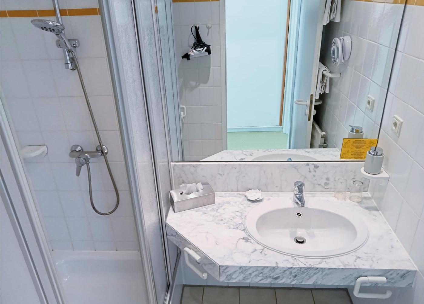 Einzelzimmer. Das klassisch eingerichtete Zimmer verfügt über einen kleinen Sitzbereich, einen TV und ein eigenes Bad. ;