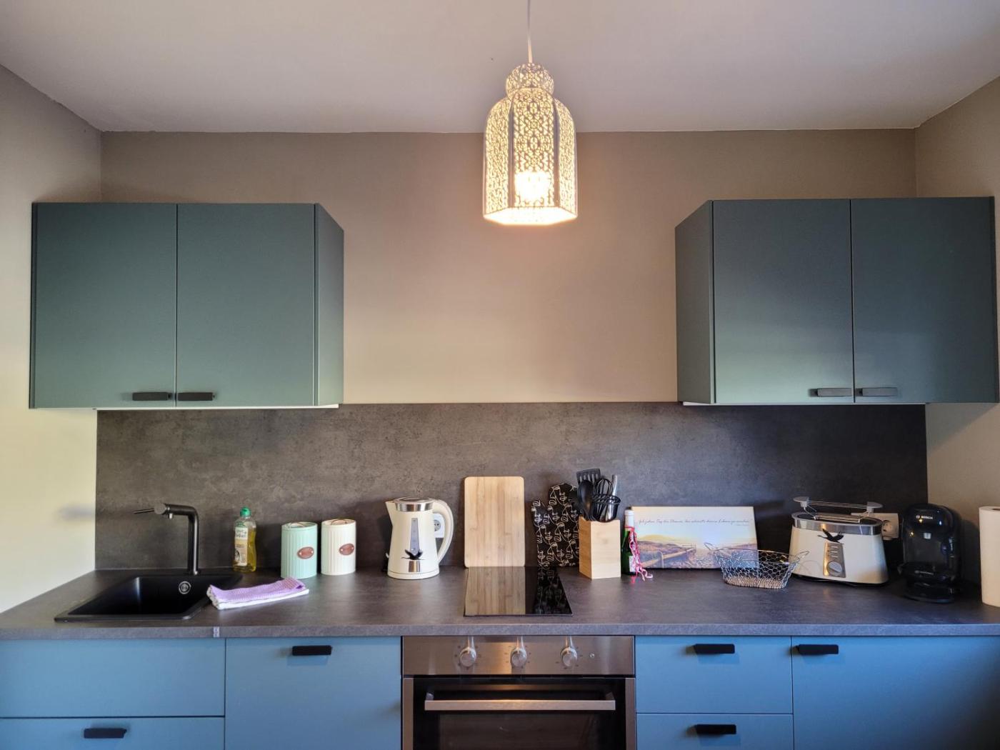 Apartment - Erdgeschoss. The apartments kitchen is available for cooking and storing food. The apartment provides a seating area and a wardrobe, as well as a private bathroom featuring a shower. The unit offers 1 bed.