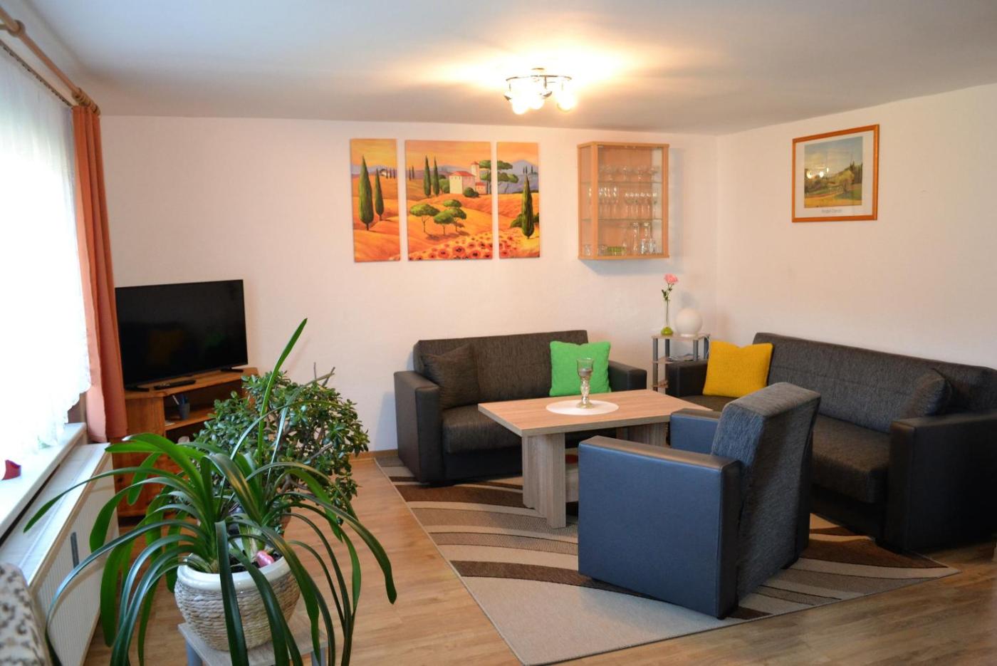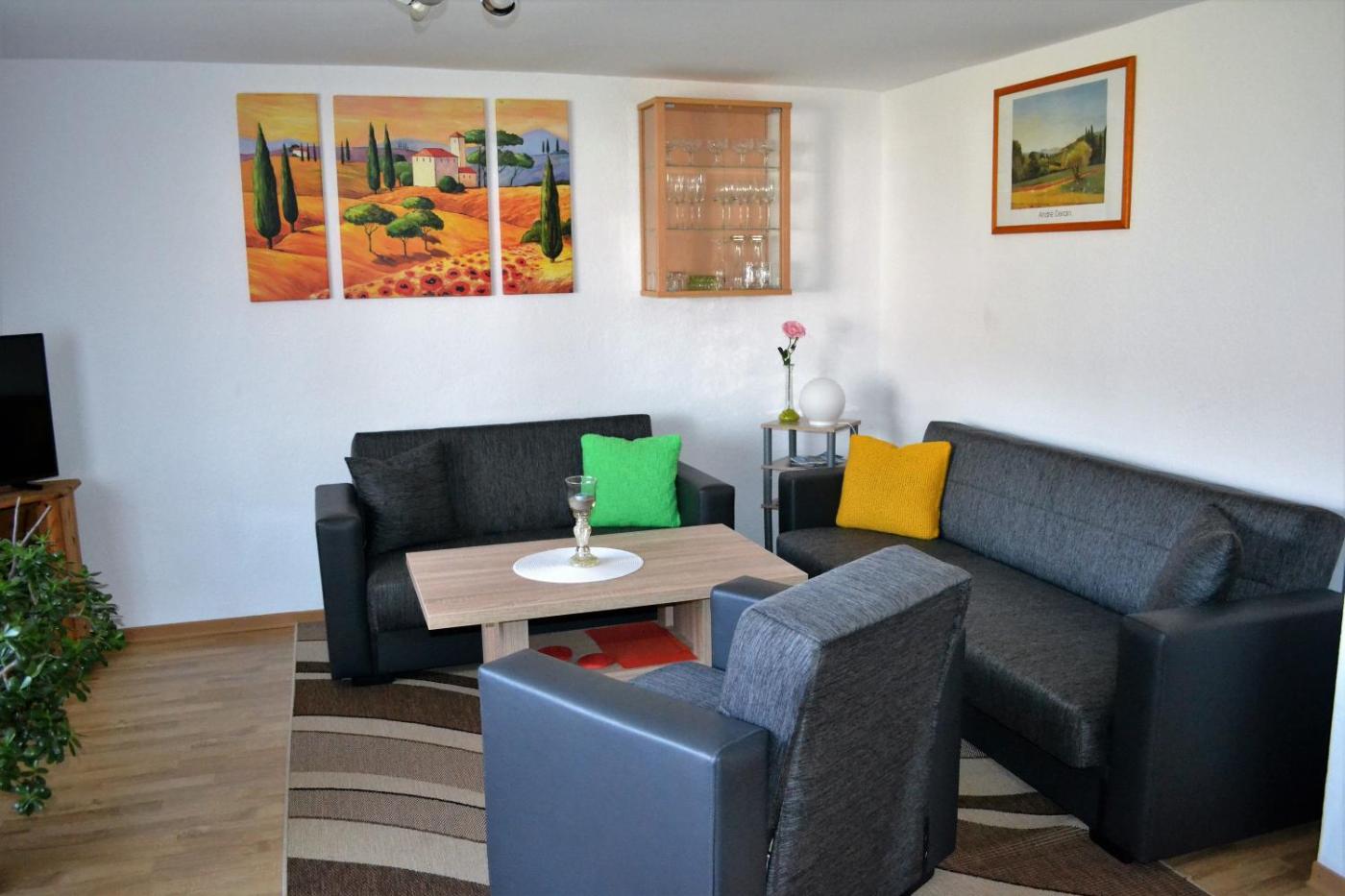 Apartment mit 3 Schlafzimmern und Terrasse. Boasting 3 bedrooms and 1 bathroom with a bath, this spacious apartment has a well-fitted kitchen and a terrace. The fully equipped kitchen has a refrigerator, an oven and a microwave. This apartment features a high chair for children, heating and a flat-screen TV. The unit offers 4 beds.