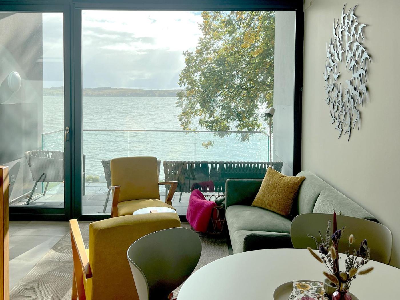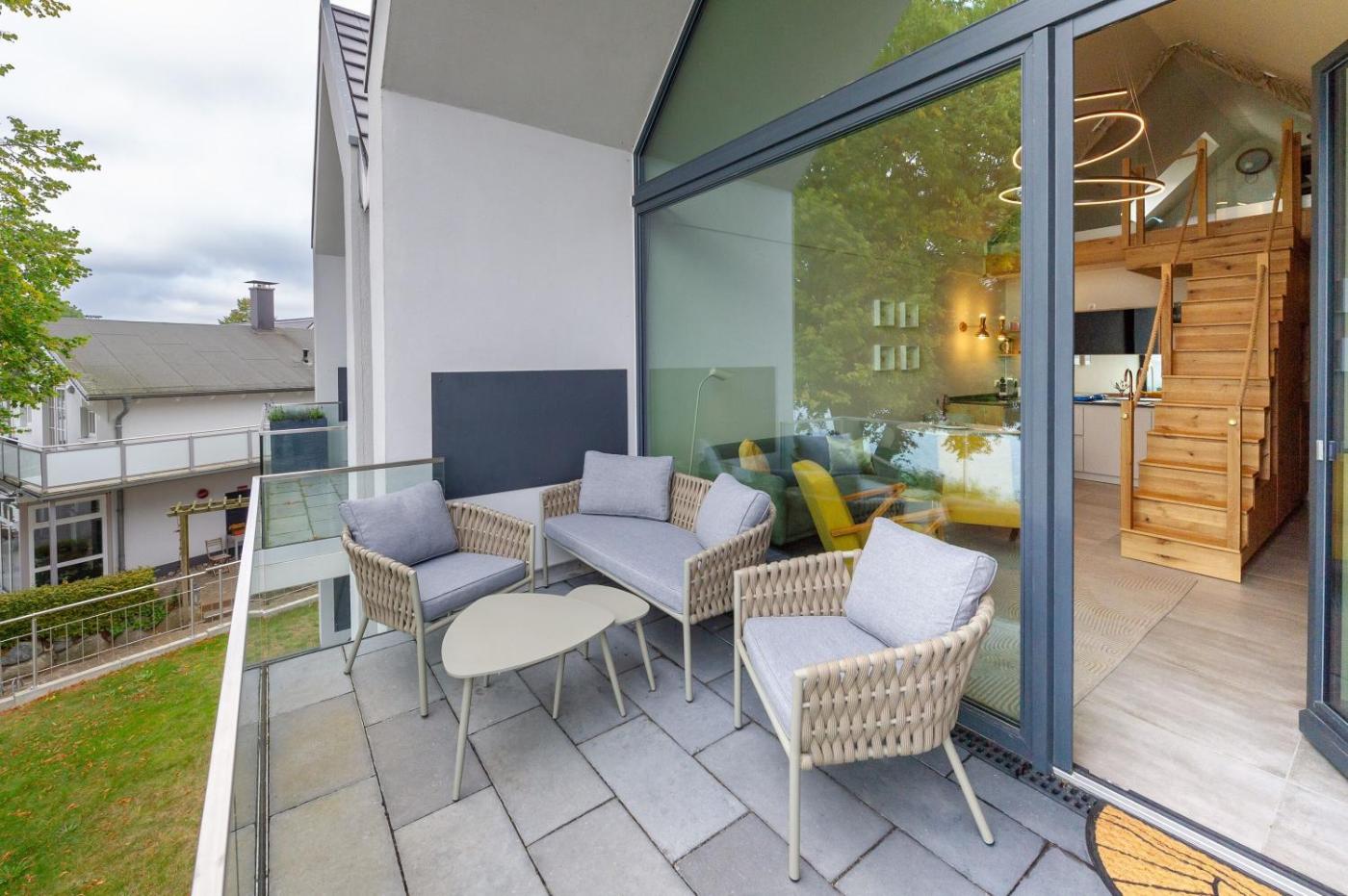 Apartment mit 1 Schlafzimmer und Balkon. The sauna and fireplace are the standout features of this apartment. Featuring a private entrance, this spacious apartment also is comprised of 1 living room, 1 separate bedroom and 1 bathroom with a walk-in shower. In the well-equipped kitchenette, guests will find a stovetop, a refrigerator, a dishwasher and kitchenware. The apartment offers a washing machine, soundproof walls, a coffee machine, a flat-screen TV, as well as sea views. The unit offers 2 beds.