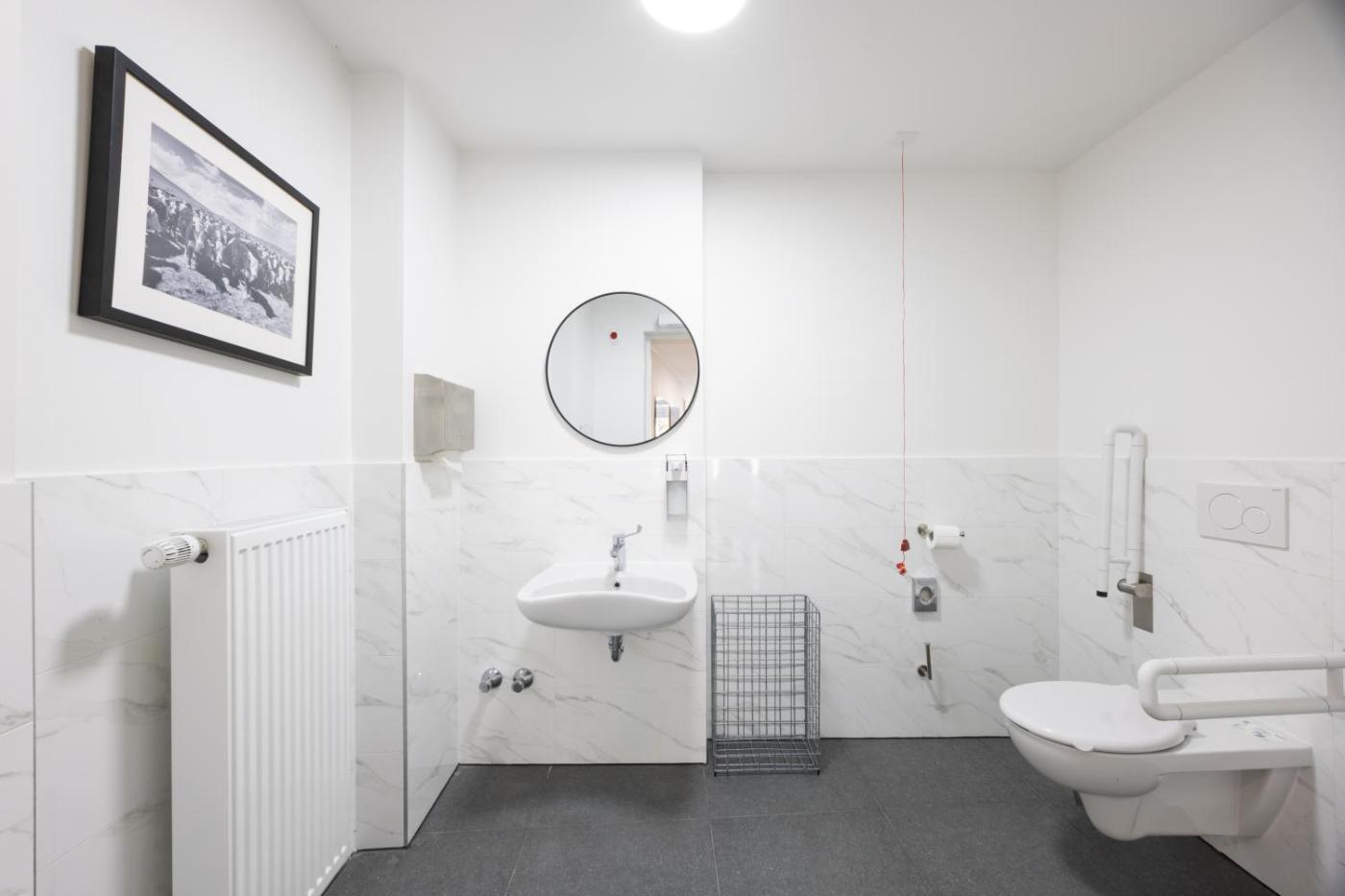 Zimmer mit Queensize-Bett - barrierefrei. Dieses Doppelzimmer verfügt über einen Sitzbereich, einen Kleiderschrank sowie ein eigenes Bad mit einer ebenerdigen Dusche und einem Haartrockner. Die Wohneinheit ist mit 1 Bett ausgestattet.