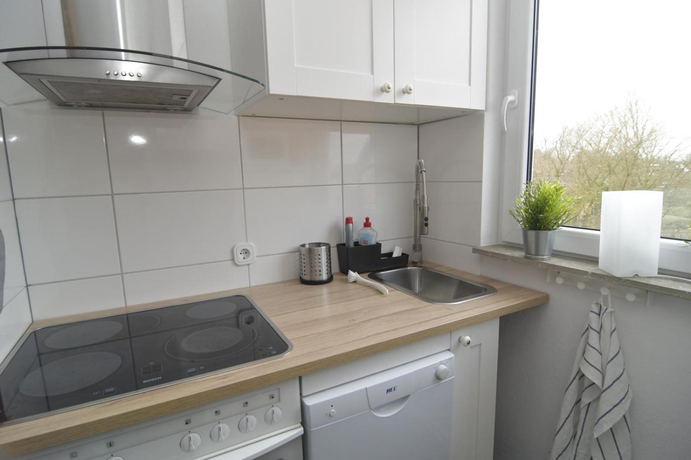 Apartment mit 1 Schlafzimmer. This apartment is comprised of 1 living room, 1 separate bedroom and 1 bathroom with a shower and a hairdryer. Meals can be prepared in the well-fitted kitchen, which is fitted with a stovetop, a dishwasher, an oven and a microwave. The apartment features parquet floors, a seating area with a flat-screen TV, a washing machine, a tea and coffee maker as well as city views. The unit offers 2 beds.