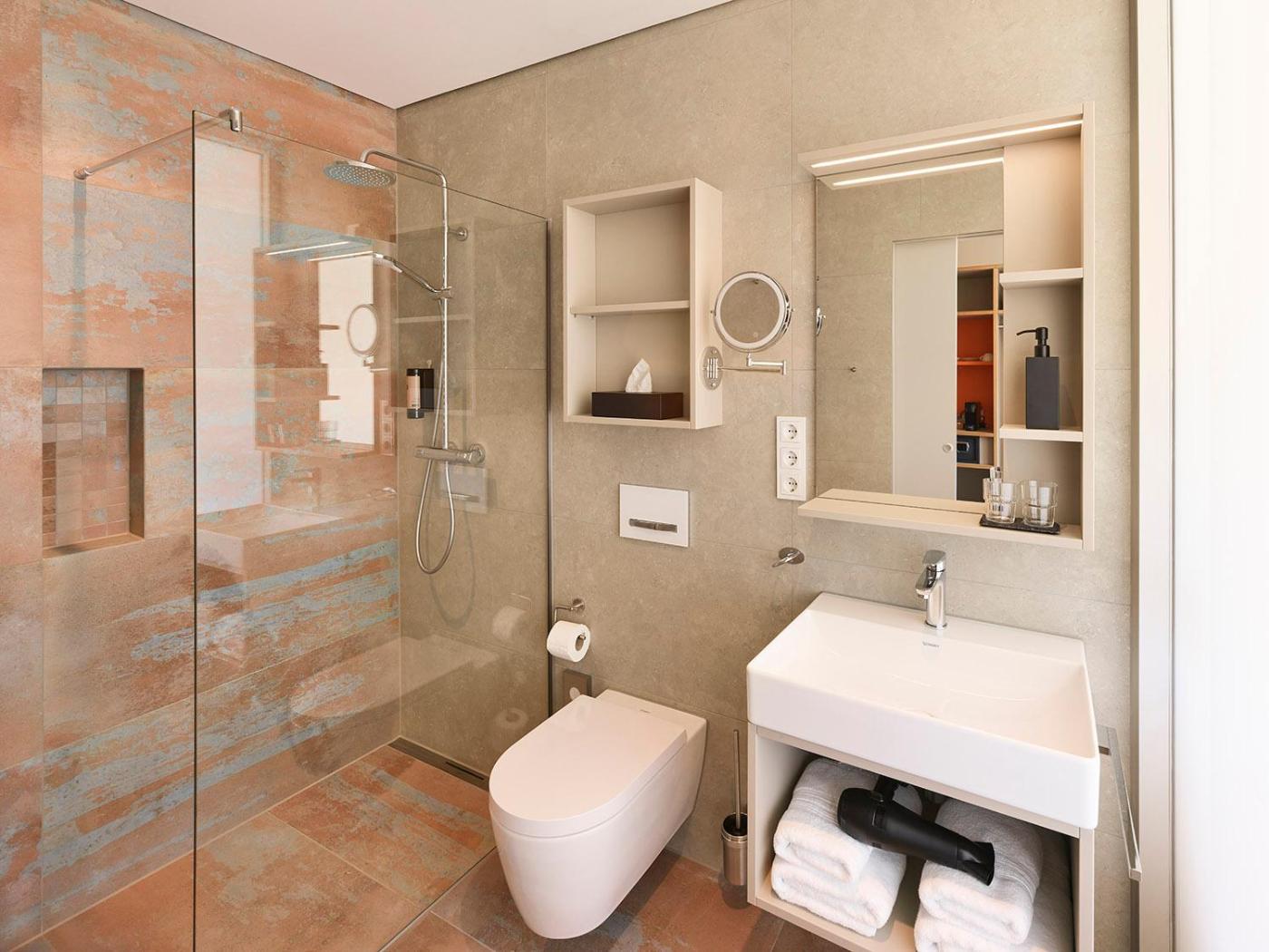 Deluxe Suite. The suites kitchen is available for cooking and storing food. The suite provides a coffee machine, a seating area, as well as a private bathroom featuring a bath or a shower and a hairdryer.