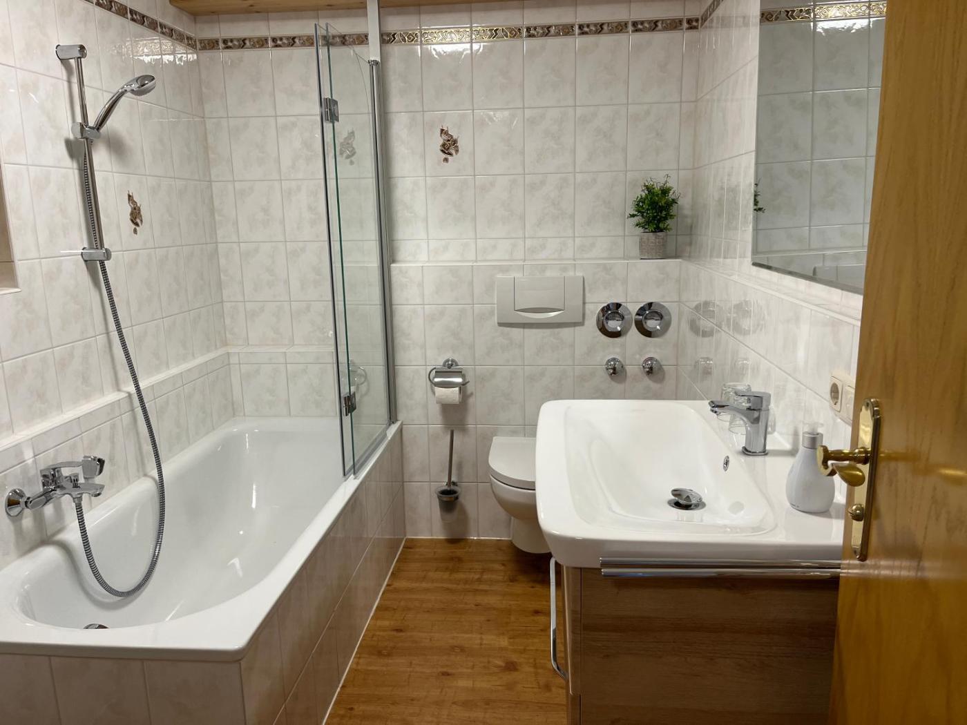 Apartment mit Gartenblick. This apartment comprises 1 living room, 1 separate bedroom and 1 bathroom with a bath and a hairdryer. The well-equipped kitchenette features a stovetop, a refrigerator, kitchenware and a microwave. Featuring a terrace with garden views, this apartment also provides a tea and coffee maker and a flat-screen TV with cable channels. The unit offers 2 beds.