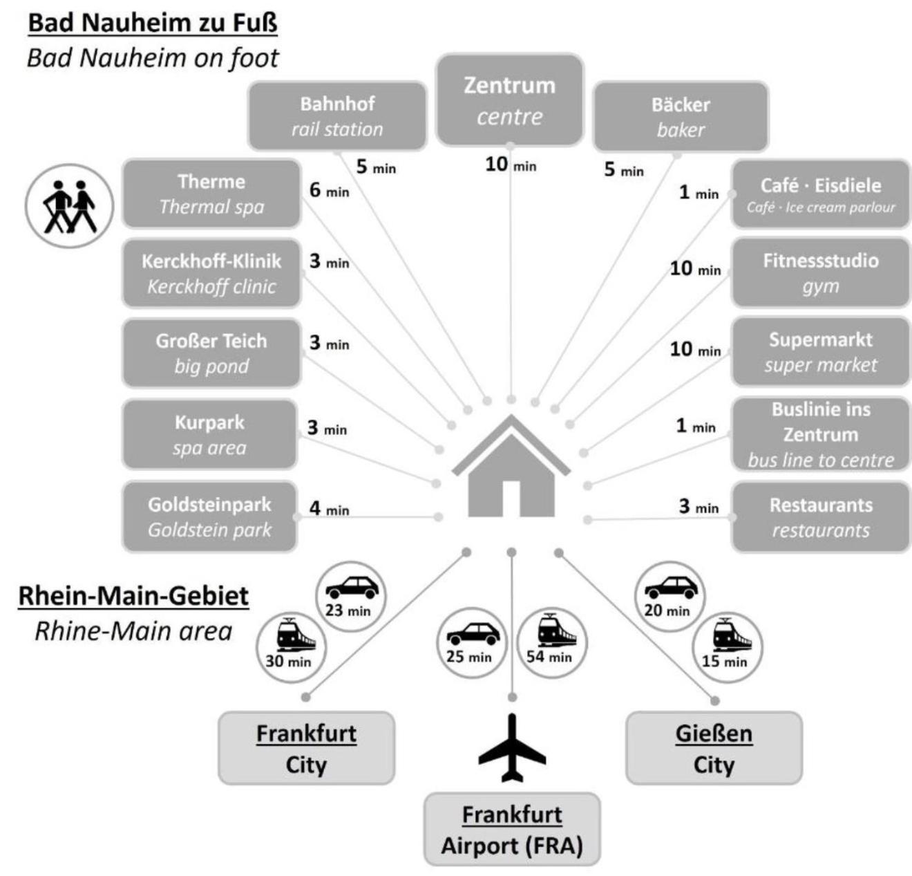 Römerberg (Frankfurt am Main) liegt 35 km von der Unterkunft Deluxe Apartment - DIE WOHLFÜHL-OASE nahe dem Zentrum entfernt, während Klassikstadt 36 km von der Unterkunft entfernt ist. Der nächstgelegene Flughafen ist der Flughafen Frankfurt, 44 km von der Unterkunft Deluxe Apartment - DIE WOHLFÜHL-OASE nahe dem Zentrum entfernt. Die Unterkunft bietet einen kostenpflichtigen Flughafentransfer.