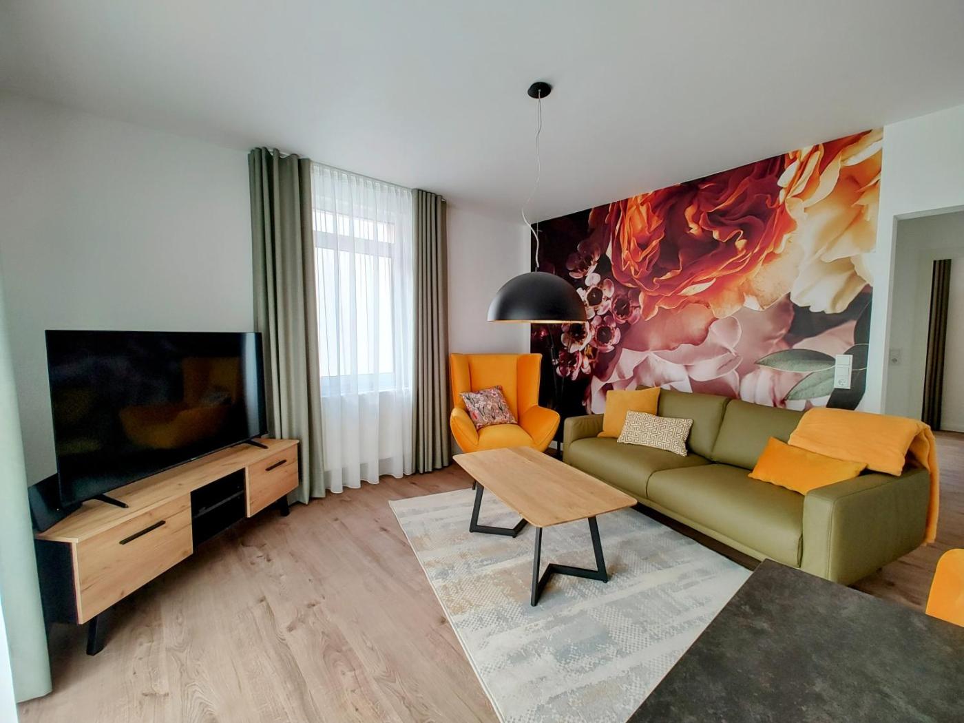 Deluxe Apartment. This spacious apartment consists of 1 living room, 1 separate bedroom and 1 bathroom with a shower and free toiletries. Guests can make meals in the kitchen that is equipped with a stovetop, a refrigerator, a dishwasher and kitchenware. The apartment provides a flat-screen TV with cable channels, a washing machine, a private entrance, soundproof walls as well as garden views. The unit offers 1 bed. ;
