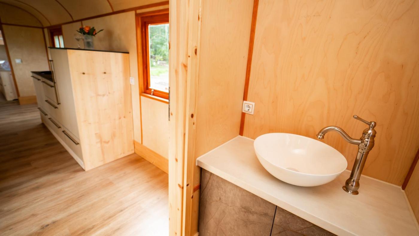 Die Unterkunft Schloss Sigrön Zirkuswagen hat einen Wellness-Bereich mit einer Sauna.
