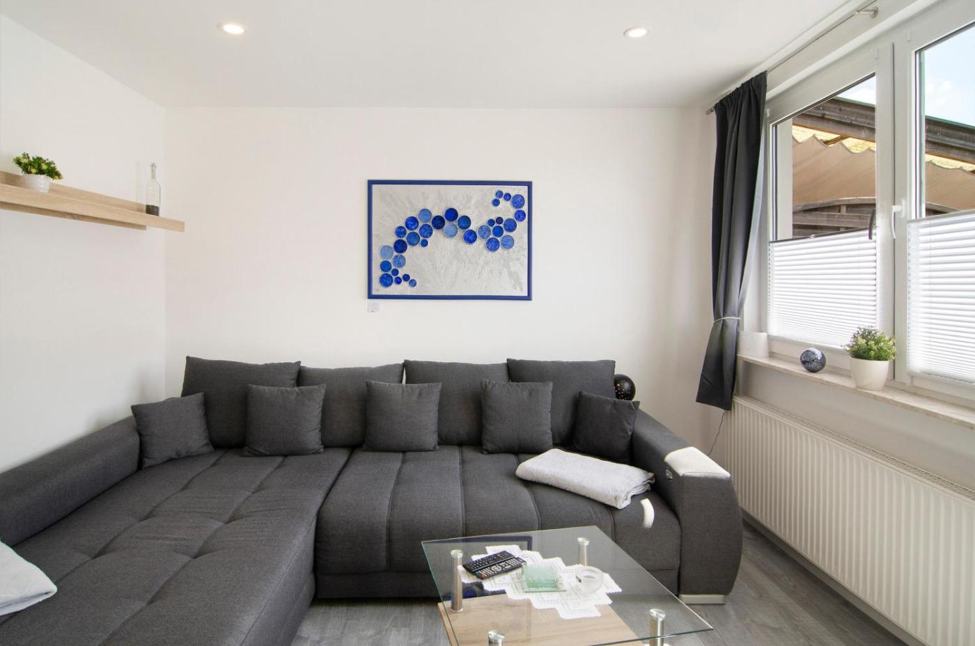 Deluxe-Apartment mit 2 Schlafzimmern und Gartenblick. Boasting a private entrance, this apartment features 1 living room, 2 separate bedrooms and 1 bathroom with a shower and a hairdryer. Meals can be prepared in the well-fitted kitchen, which has a dishwasher, kitchenware, an oven and a microwave. Featuring a terrace with garden views, this apartment also features a coffee machine and a TV with satellite channels. The unit has 4 beds.
