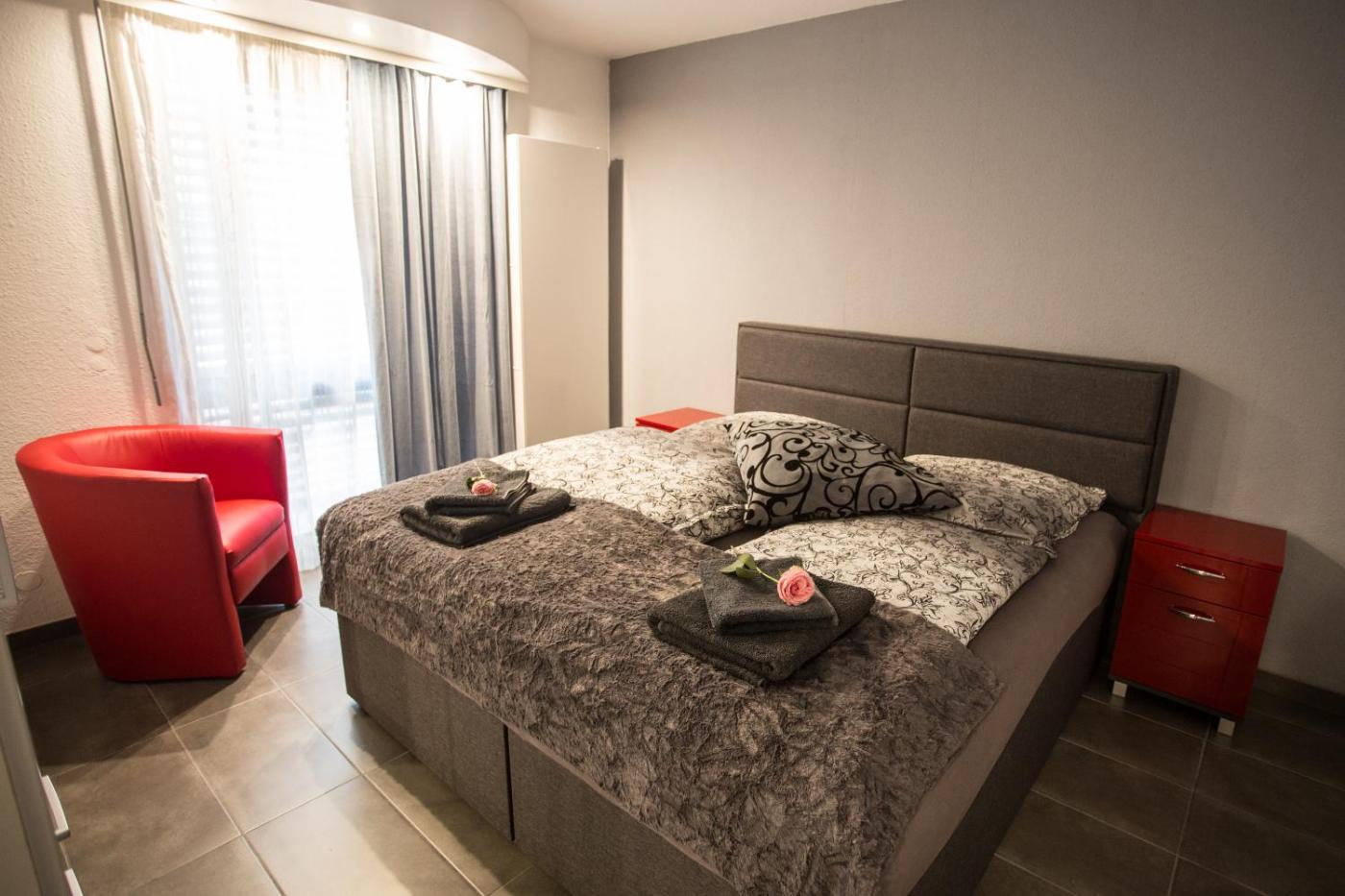 Apartment mit 2 Schlafzimmern. Die geräumige Ferienwohnung verfügt über 1 Wohnzimmer, 2 separate Schlafzimmer sowie 1 Bad mit einer Dusche und Bademänteln. In der komplett ausgestatteten Küche erwarten Sie ein Kochfeld, ein Kühlschrank, ein Geschirrspüler und Küchenutensilien. Zu den weiteren Annehmlichkeiten dieser klimatisierten Ferienwohnung gehören ein Sitzbereich mit einem Flachbild-TV, eine Waschmaschine, eine Kaffeemaschine, ein Essbereich und ein Kleiderschrank. In dieser Wohneinheit befinden sich 3 Betten. ;