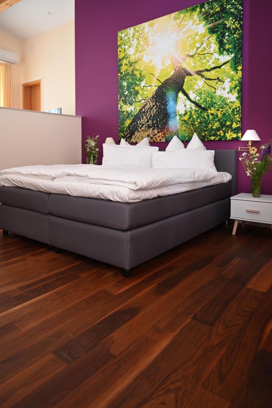 Doppelzimmer. The spacious double room offers a wardrobe, a sofa, as well as a private bathroom featuring a shower and a hairdryer. The double room features parquet floors, heating and a balcony. The unit offers 1 bed. ;
