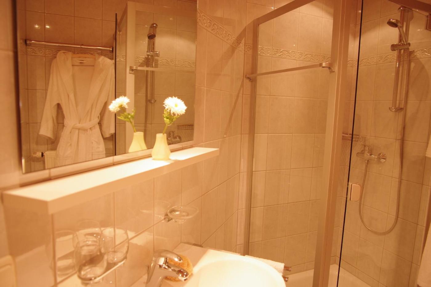 Ein voll ausgestattetes eigenes Badezimmer mit einer Dusche und einem Haartrockner ist vorhanden.