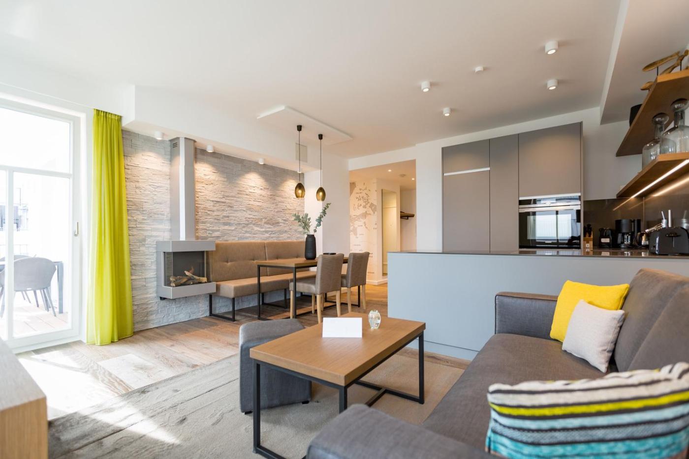 Apartment mit 2 Schlafzimmern und Balkon. Guests will have a special experience as this apartment features a fireplace. This spacious apartment is comprised of 1 living room, 2 separate bedrooms and 2 bathrooms with a shower. Meals can be prepared in the kitchenette, which comes with a refrigerator, a dishwasher, an oven and a microwave. Featuring a balcony with sea views, this apartment also offers a washing machine and a flat-screen TV. The unit offers 2 beds.
