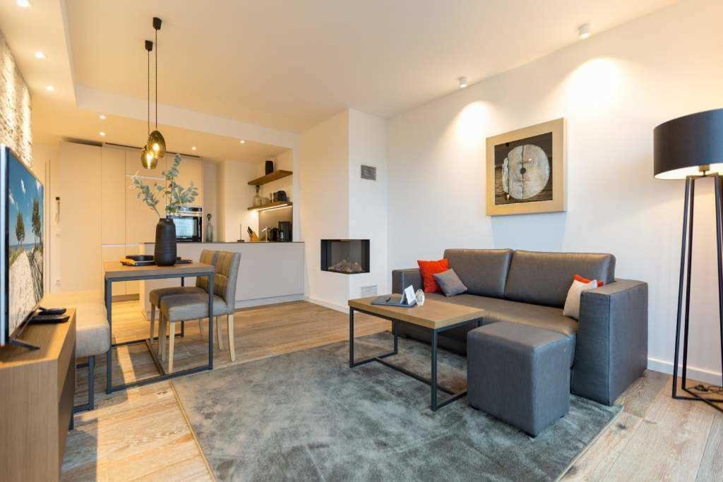 Apartment mit 1 Schlafzimmer und Balkon. This apartment features a fireplace. This apartment comprises 1 living room, 1 separate bedroom and 1 bathroom with a shower. Meals can be prepared in the well-fitted kitchenette, which comes with a refrigerator, a dishwasher, an oven and a microwave. Featuring a balcony with sea views, this apartment also provides a coffee machine and a flat-screen TV. The unit offers 1 bed.