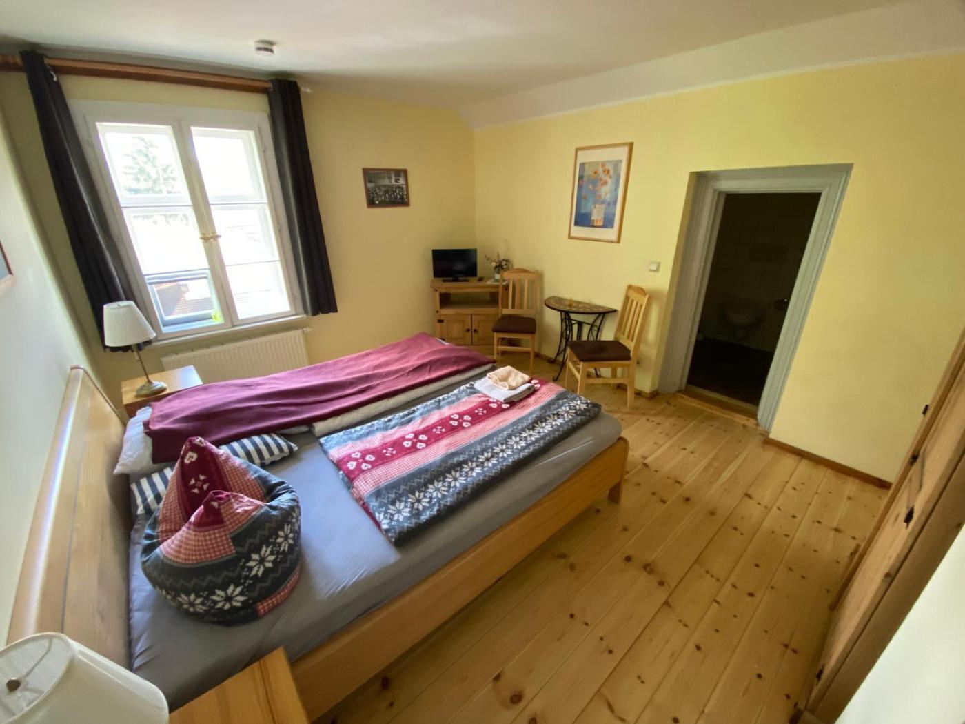 Das Hotel befindet sich in einem denkmalgeschützten Gebäude aus dem Jahr 1853 im Museumsdorf Glashütte und wurde liebevoll renoviert. Die hellen und geräumigen Zimmer sind farbenfroh, mit Holzmöbeln und einem Holzboden eingerichtet. Jedes Zimmer verfügt über einen Sitzbereich und ein eigenes Bad mit Dusche.