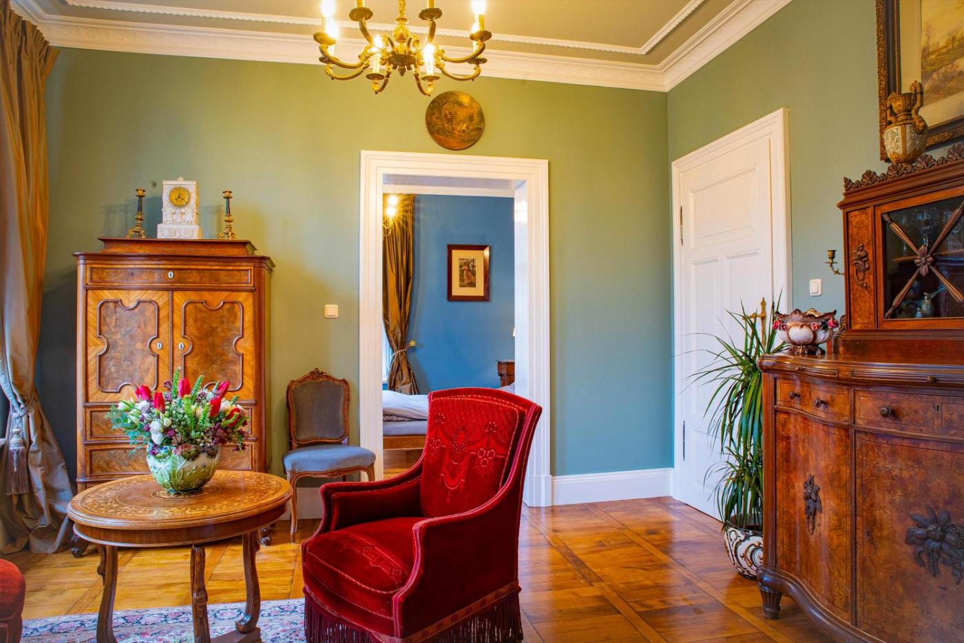 Apartment mit 2 Schlafzimmern. Featuring a private entrance, this spacious apartment also is comprised of 1 living room, 2 separate bedrooms and 1 bathroom with a bath. In the fully equipped kitchen, guests will find a stovetop, a refrigerator, kitchenware and an oven. The apartment features parquet floors, a seating area with a flat-screen TV, a tea and coffee maker, a dining area as well as a quiet street view. The unit offers 2 beds.