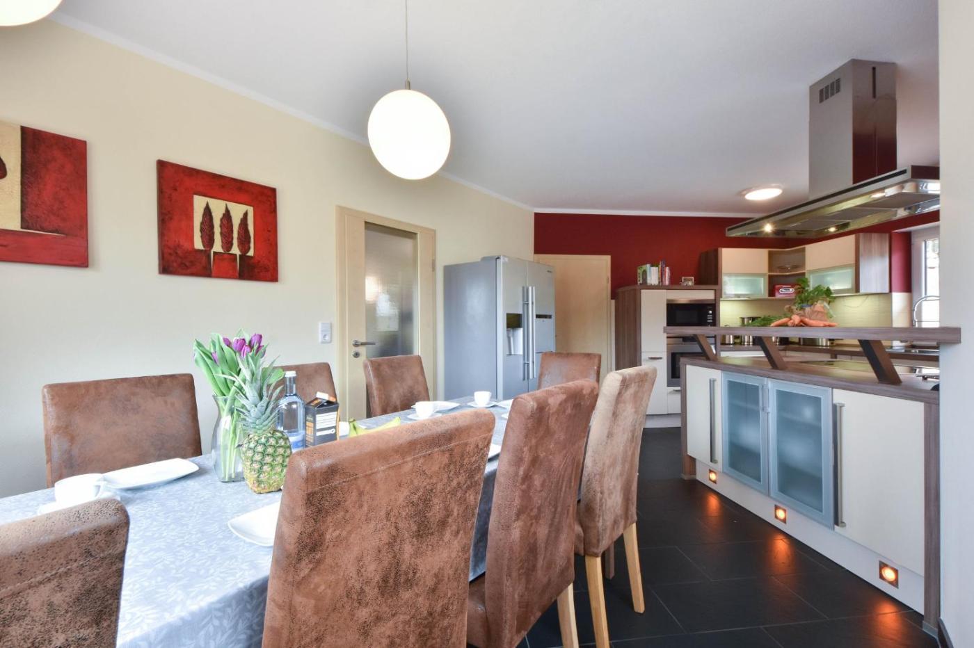 Ferienhaus. The sauna and fireplace are the standout features of this holiday home. Boasting a private entrance, this spacious holiday home also features 4 bedrooms, a seating area and 2 bathrooms with a bath and a shower. Guests will find a stovetop, a refrigerator, a dishwasher and kitchenware in the fully equipped kitchen. The holiday home also comes with a barbecue. This holiday home has a washing machine, a coffee machine, a flat-screen TV with cable channels and a terrace. The unit has 5 beds.
