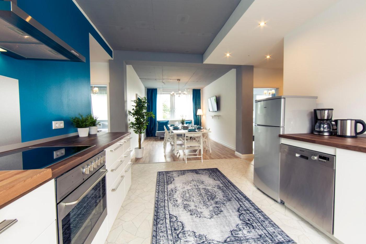 Hevals Grand Apartment mit 6 Zimmer. This spacious apartment comprises 1 living room, 5 separate bedrooms and 3 bathrooms with a bath and free toiletries. Meals can be prepared in the well-fitted kitchen, which comes with a stovetop, a refrigerator, a dishwasher and kitchenware. The apartment provides a washing machine, a private entrance, soundproof walls, a flat-screen TV, as well as city views. The unit offers 14 beds.