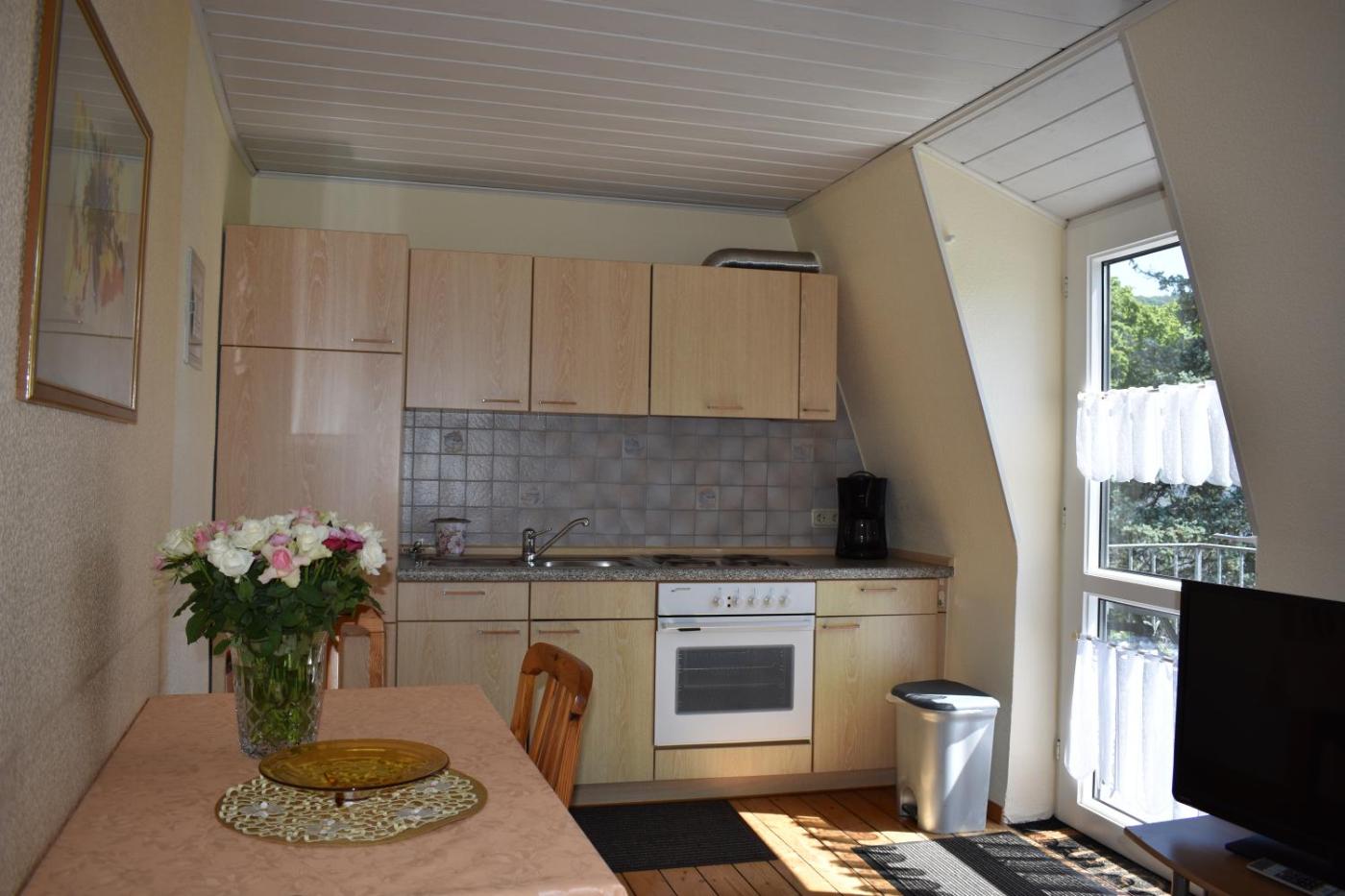 Vierbettzimmer. In the well-fitted kitchen, guests will find a stovetop, a refrigerator, kitchenware and an oven. The spacious quadruple room provides a private entrance, a tea and coffee maker, a balcony with garden views as well as a private bathroom featuring a shower. The unit offers 3 beds.