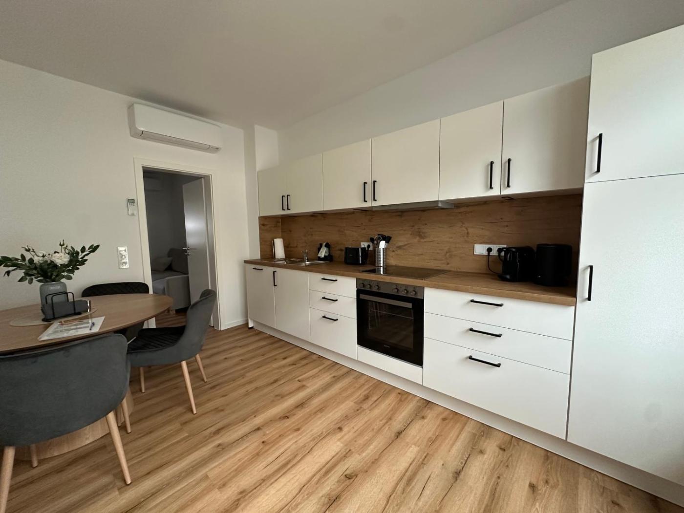 Apartment mit 1 Schlafzimmer. This spacious apartment comprises 1 living room, 1 separate bedroom and 1 bathroom with a shower and free toiletries. Meals can be prepared in the well-fitted kitchen, which is equipped with a stovetop, a refrigerator, a dishwasher and kitchenware. The air-conditioned apartment provides a flat-screen TV with cable channels, a washing machine, a minibar, a coffee machine as well as garden views. The unit offers 2 beds.