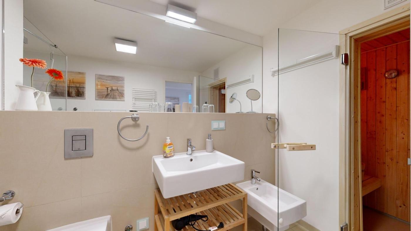 In der Unterkunft FeWo in direkter Strandlage mit Balkon und Sauna, Dünenresidenz Prora-App 111 können Gäste eine Sauna nutzen.