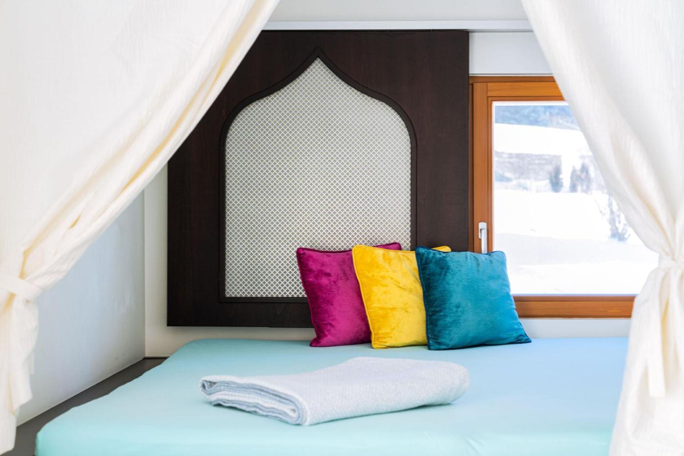 Nach einem Tag Skifahren oder Fahrradfahren können die Gäste im Garten oder in der Gemeinschaftslounge entspannen.