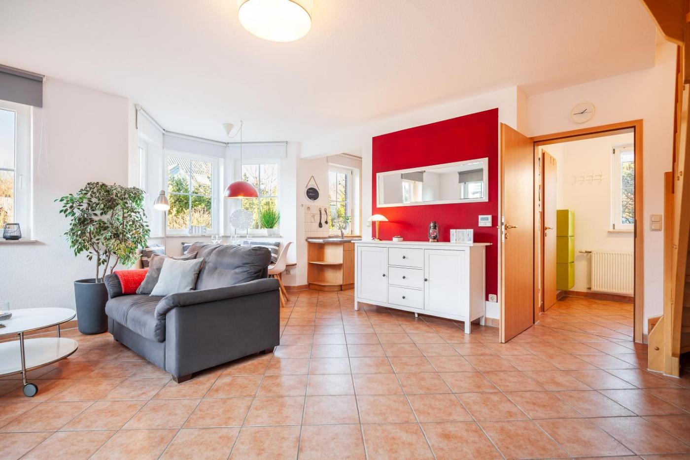 Ferienhaus. This holiday home features a fireplace. This holiday home comprises 2 bedrooms, kitchen, a terrace and 2 bathrooms with a bath. Guests will find a stovetop, a refrigerator, a dishwasher and kitchenware in the fully equipped kitchen. The holiday home also provides guests with a barbecue. Featuring a balcony, this holiday home also provides a washing machine, a tea and coffee maker and a TV. The unit offers 3 beds.
