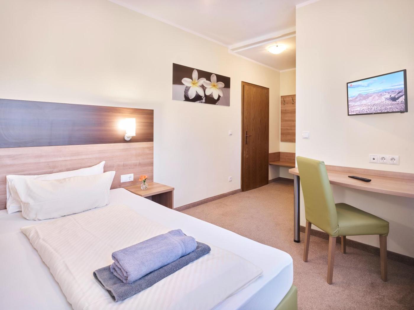 Doppelzimmer. The double room offers a wardrobe, a carpeted floor and heating. The unit offers 1 bed.