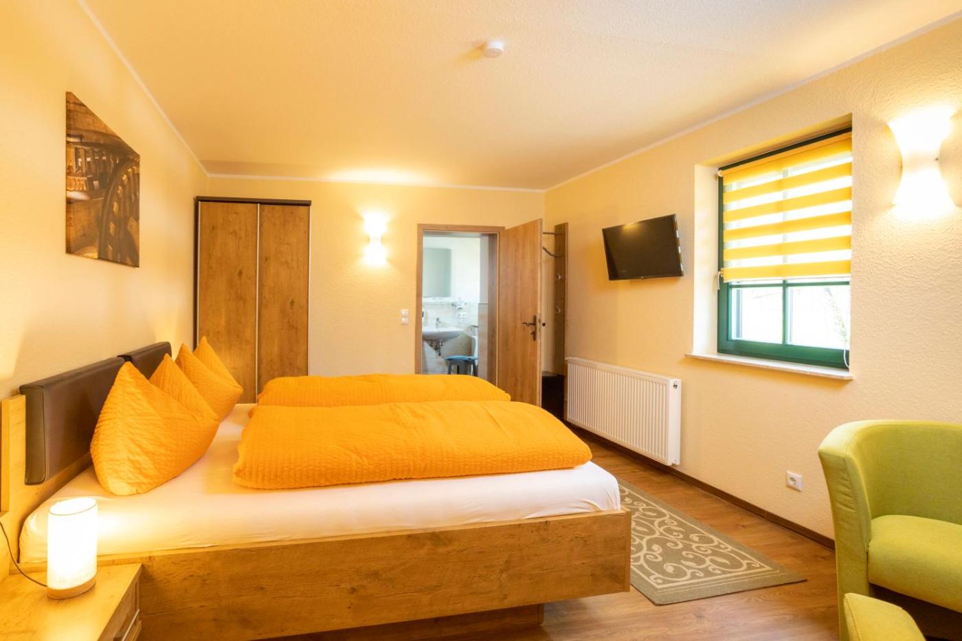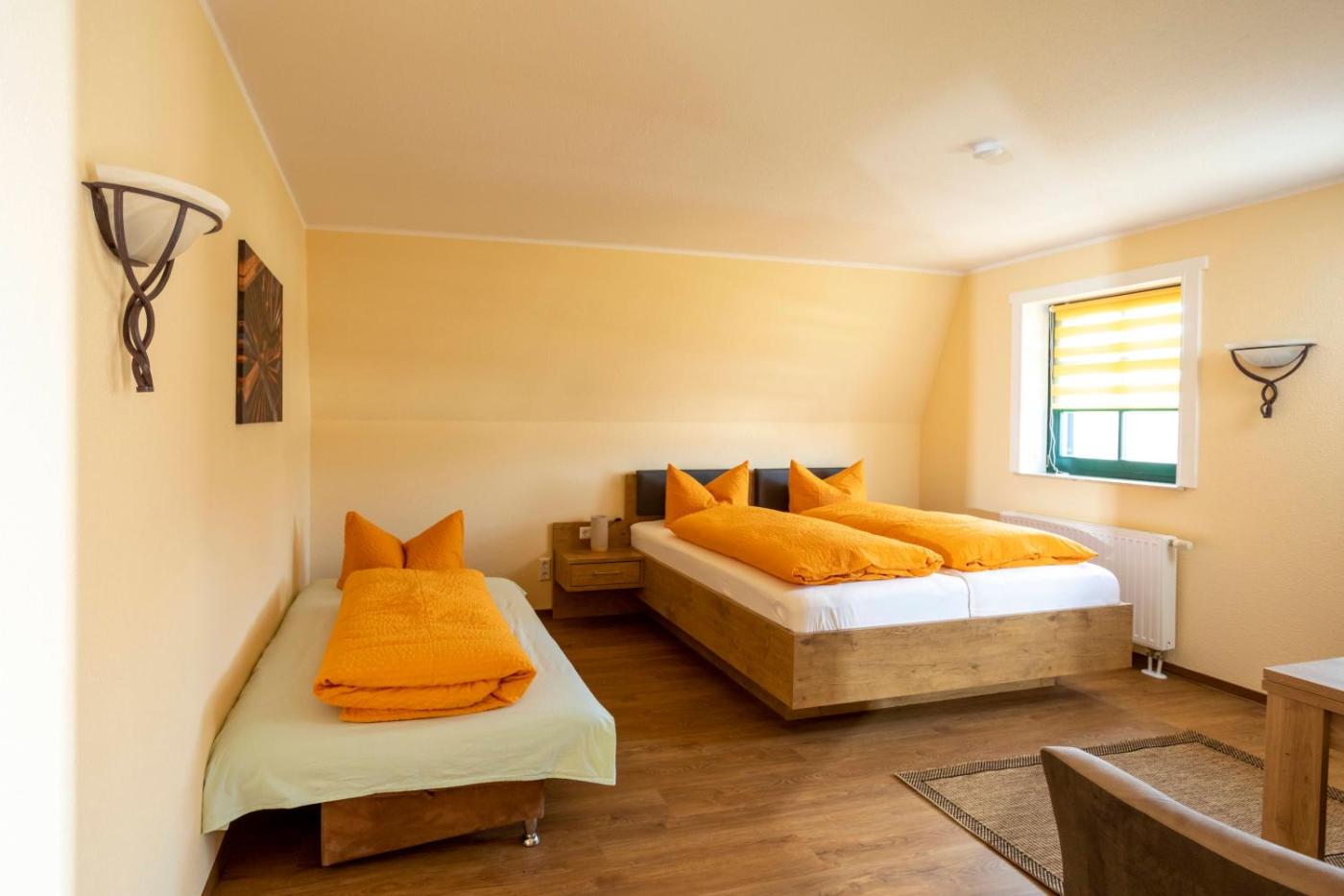 Familienzimmer. Dieses Familienzimmer verfügt über ein eigenes Bad mit einer Dusche, kostenlosen Pflegeprodukten und einem Haartrockner. Das Familienzimmer bietet darüber hinaus Gartenblick, einen Sitzbereich, einen Kleiderschrank, Parkett und einen Flachbild-Sat-TV. In dieser Wohneinheit befinden sich 3 Betten. ;