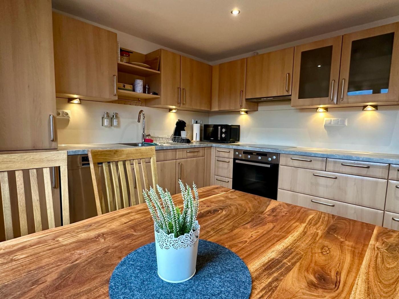 Apartment mit Dusche. Boasting a private entrance, this spacious apartment also comes with 2 bedrooms, a seating area and 1 bathroom with a walk-in shower and a hairdryer. Guests will find a stovetop, a refrigerator, a dishwasher and kitchenware in the fully equipped kitchen. The apartment also includes a barbecue. Featuring a balcony with garden views, this apartment also features a washing machine and a flat-screen TV with cable channels. The unit has 2 beds.