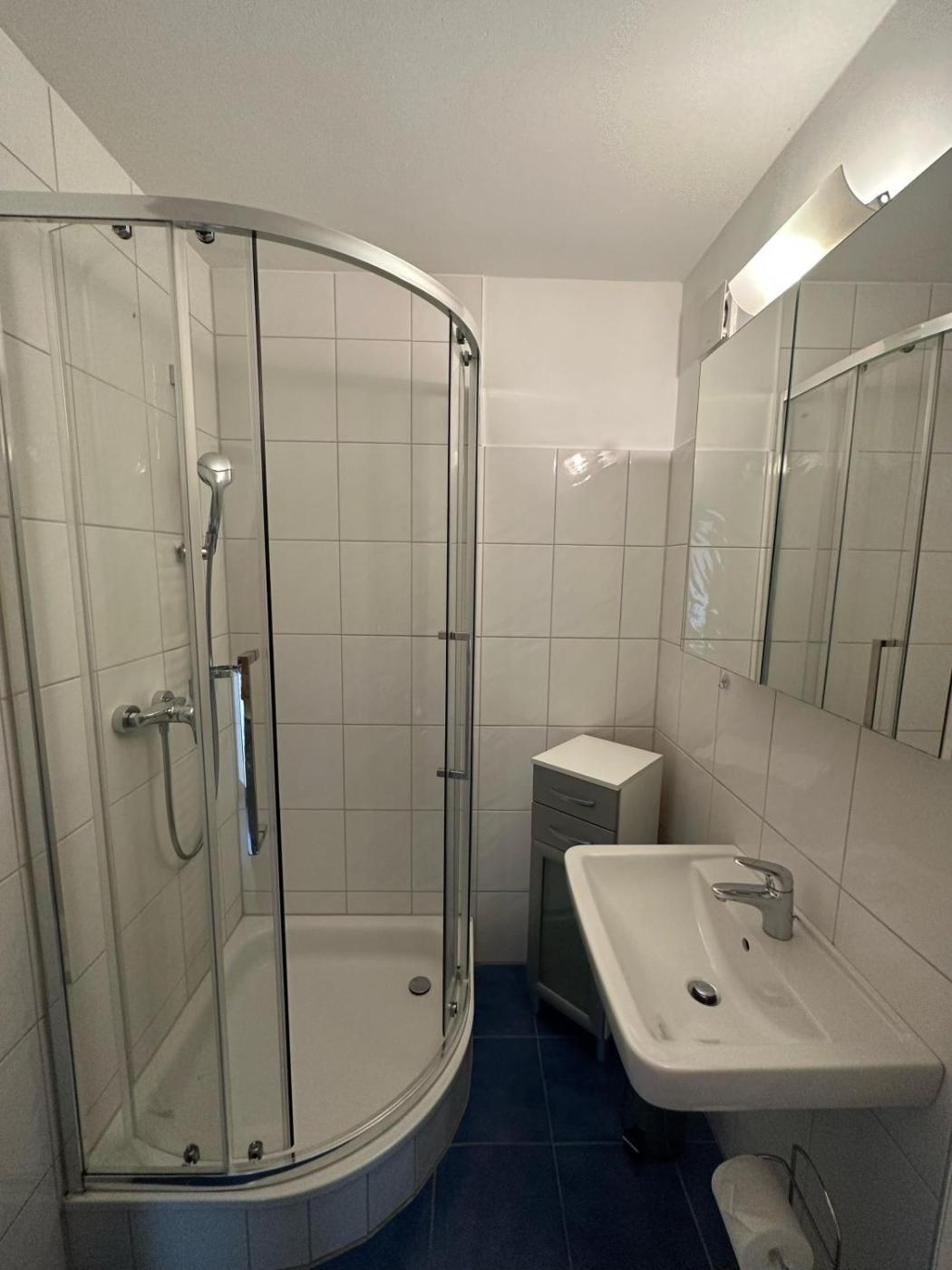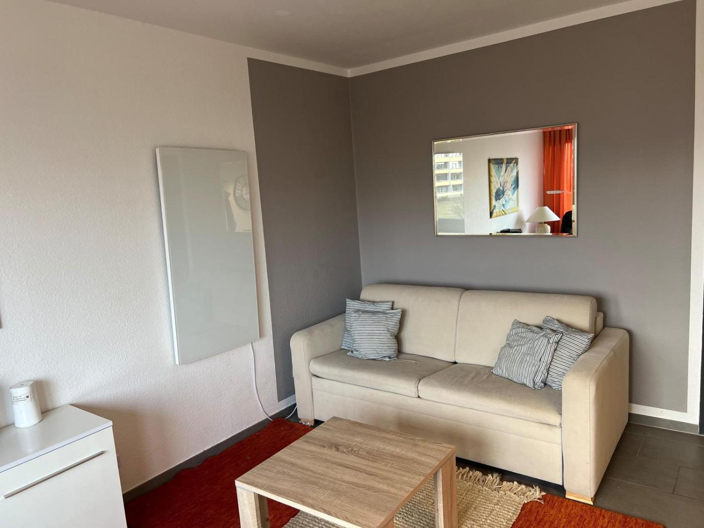 Apartment mit 1 Schlafzimmer. This apartment includes a kitchen, a seating area, 2 separate bedrooms and 1 bathroom with a shower and a hairdryer. Guests can make meals in the kitchen that is fitted with a stovetop, a refrigerator, a dishwasher and kitchenware. The apartment offers a coffee machine, a wardrobe, a sofa, a tiled floor, as well as a TV with cable channels. The unit has 2 beds.