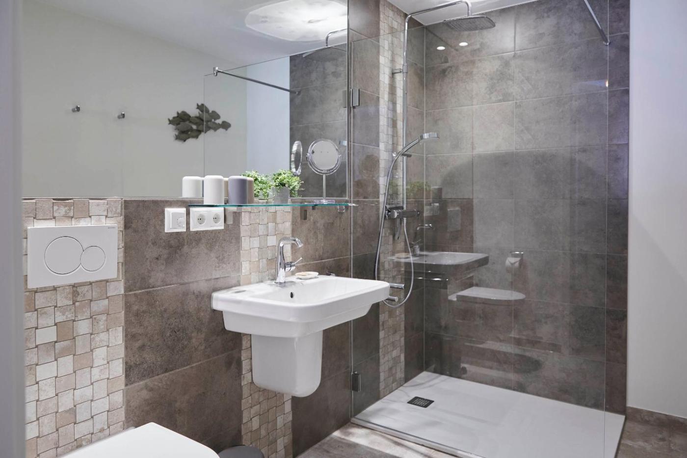 Apartment mit Balkon. This apartments standout feature is the sauna. This spacious apartment includes a kitchen, a seating area, 2 separate bedrooms and 1 bathroom with a shower and a hairdryer. Meals can be prepared in the well-fitted kitchen, which is fitted with a stovetop, a refrigerator, a dishwasher and kitchenware. This apartment has a washing machine, a coffee machine, a TV and a balcony. The unit has 2 beds.
