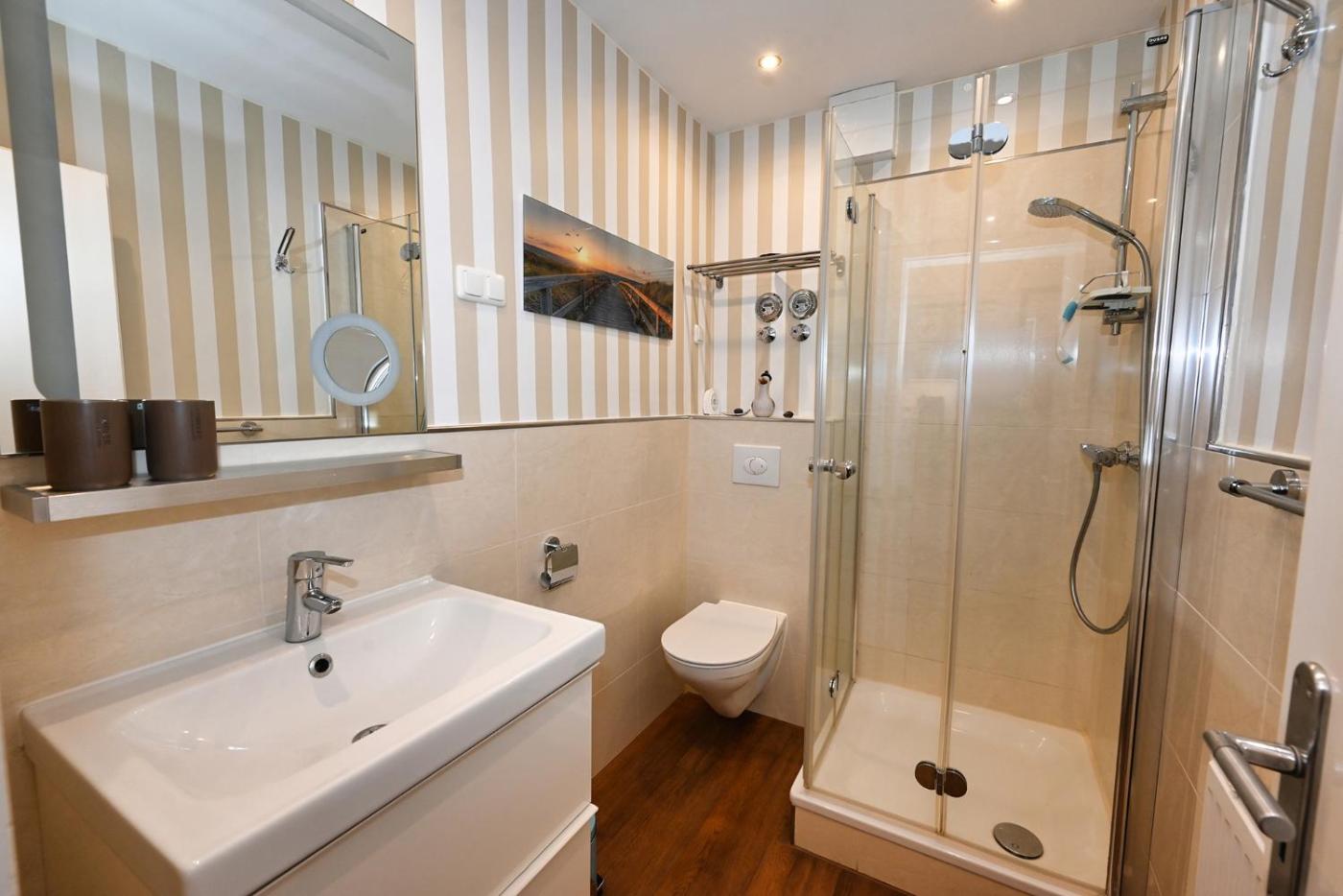 Apartment mit Meerblick. Meals can be prepared in the well-fitted kitchen, which is fitted with a stovetop, a refrigerator, a dishwasher and kitchenware. The apartment offers a coffee machine, a seating area, a terrace with sea views as well as a private bathroom featuring a shower. The unit offers 1 bed.