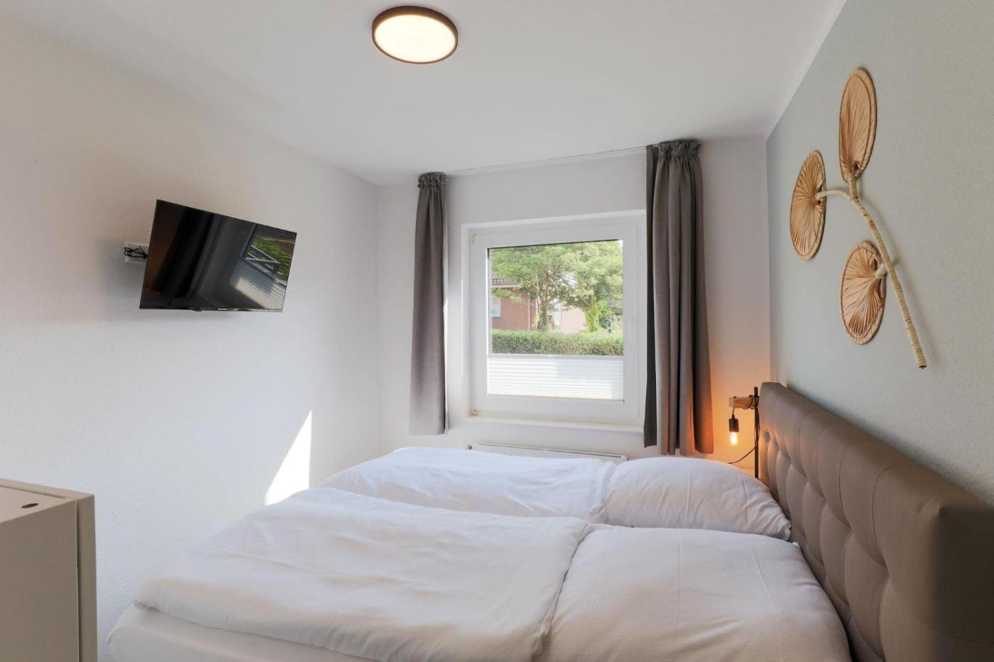 Apartment - Erdgeschoss. This apartment consists of a kitchen, a seating area, 2 separate bedrooms and 1 bathroom with a shower and a hairdryer. Guests can make meals in the kitchen that is equipped with a stovetop, a refrigerator, a dishwasher and kitchenware. Featuring an outdoor dining area, this apartment also provides a coffee machine, a wardrobe and a TV. The unit offers 3 beds.