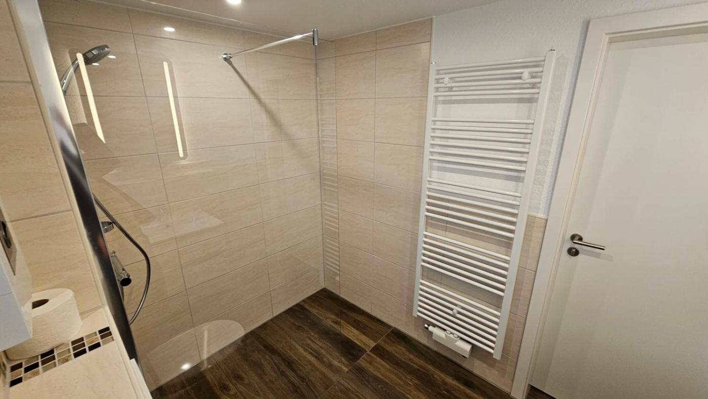 Einzelzimmer mit Gemeinschaftsbad. The single room offers a wardrobe, a carpeted floor, heating and a flat-screen TV. The unit offers 1 bed.