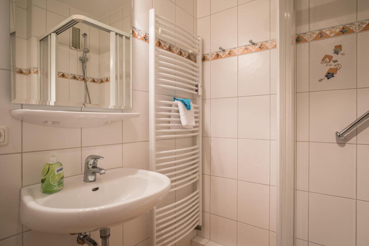 Apartment mit Balkon. This apartment features a kitchen, a seating area, 1 separate bedroom and 1 bathroom with a shower and a hairdryer. The fully equipped kitchen has a stovetop, a refrigerator, a dishwasher and kitchenware. Boasting a balcony, this apartment also features a washing machine, a coffee machine and a TV. The unit has 1 bed.