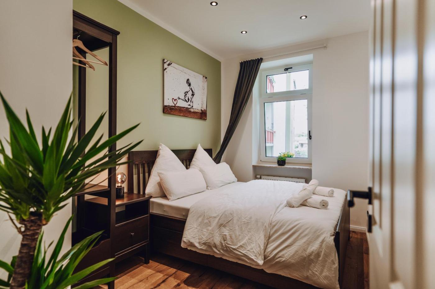 Die Unterkunft EDLER WOHNRAUM Luxuriöse 2 SZ mit Balkon, Kaffeevollautomat, Klima & Lift besticht durch Gartenblick und Übernachtungsmöglichkeiten mit einem Balkon und einem Wasserkocher, ungefähr 2,3 km von Karl-Marx-Monument entfernt. Sie hat einen Garten, eine Terrasse, Stadtblick und kostenloses WLAN in der ganzen Unterkunft.