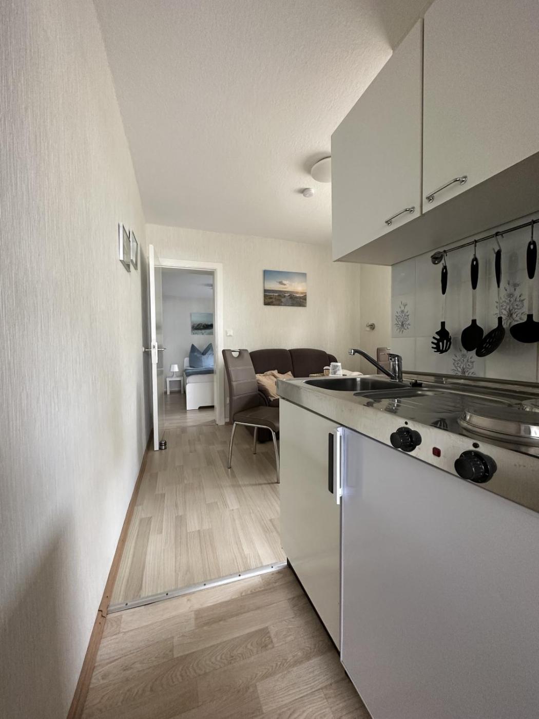 Apartment mit 2 Schlafzimmern. This apartment is comprised of a kitchenette, a seating area, 2 separate bedrooms and 1 bathroom with a shower and a hairdryer. In the well-equipped kitchenette, guests will find a stovetop, a refrigerator, kitchenware and a microwave. The apartment offers a tea and coffee maker, a dining area, a wardrobe, a sofa, as well as a flat-screen TV with cable channels. The unit offers 2 beds. ;
