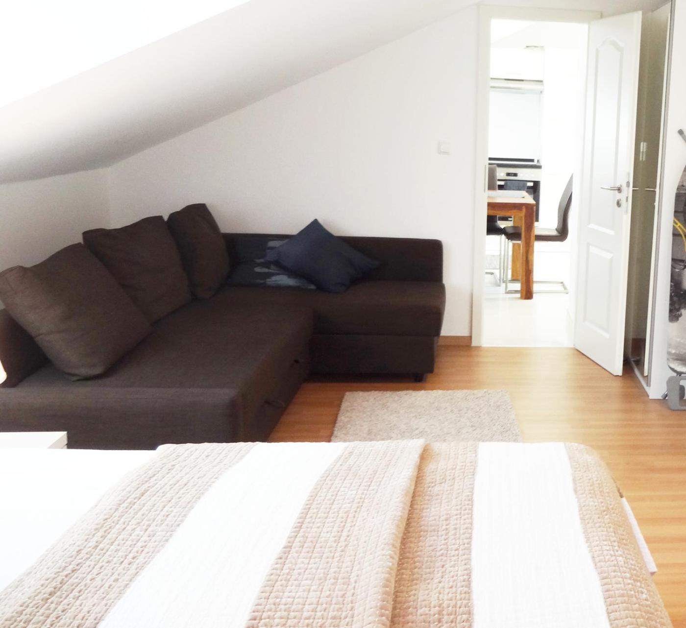 Penthouse-Apartment. Diese klimatisierte Ferienwohnung bietet einen eigenen Eingang, 1 Wohnzimmer, 2 separate Schlafzimmer sowie 1 Badezimmer mit einer Badewanne und einer Dusche. In der gut ausgestatteten Küche stehen Ihnen ein Kochfeld, ein Kühlschrank, eine Spülmaschine und Küchenutensilien zur Verfügung. Die Ferienwohnung mit Gartenblick bietet zudem eine Waschmaschine sowie einen Flachbild-TV mit Streaming-Diensten. Schokolade liegt auch für Sie bereit. In dieser Wohneinheit befinden sich 5 Betten. ;