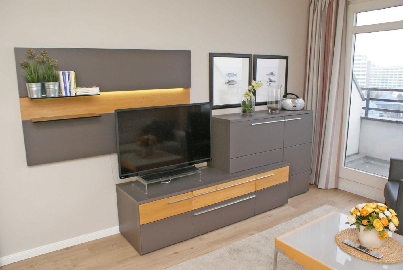 Apartment mit 2 Schlafzimmern mit Balkon und Terrasse. Featuring 2 bedrooms and 1 bathroom with a shower, this spacious apartment offers a well-fitted kitchen and a terrace. The well-equipped kitchen features a refrigerator, a dishwasher and an oven. Boasting a balcony with sea views, this apartment also offers a washing machine and a flat-screen TV with cable channels. The unit has 2 beds.