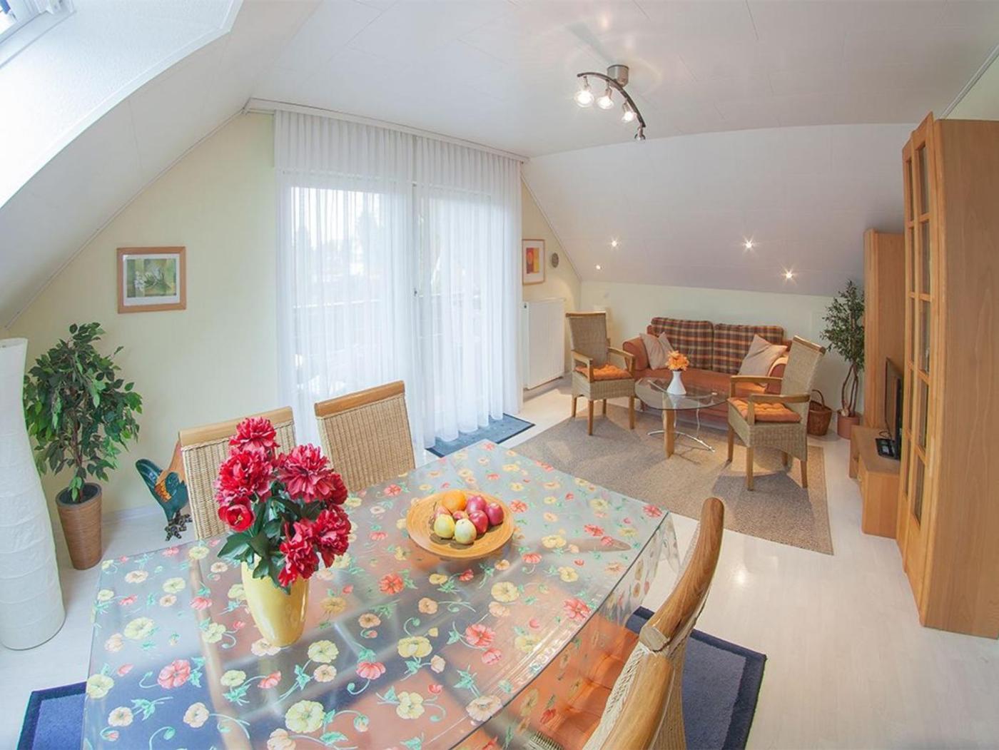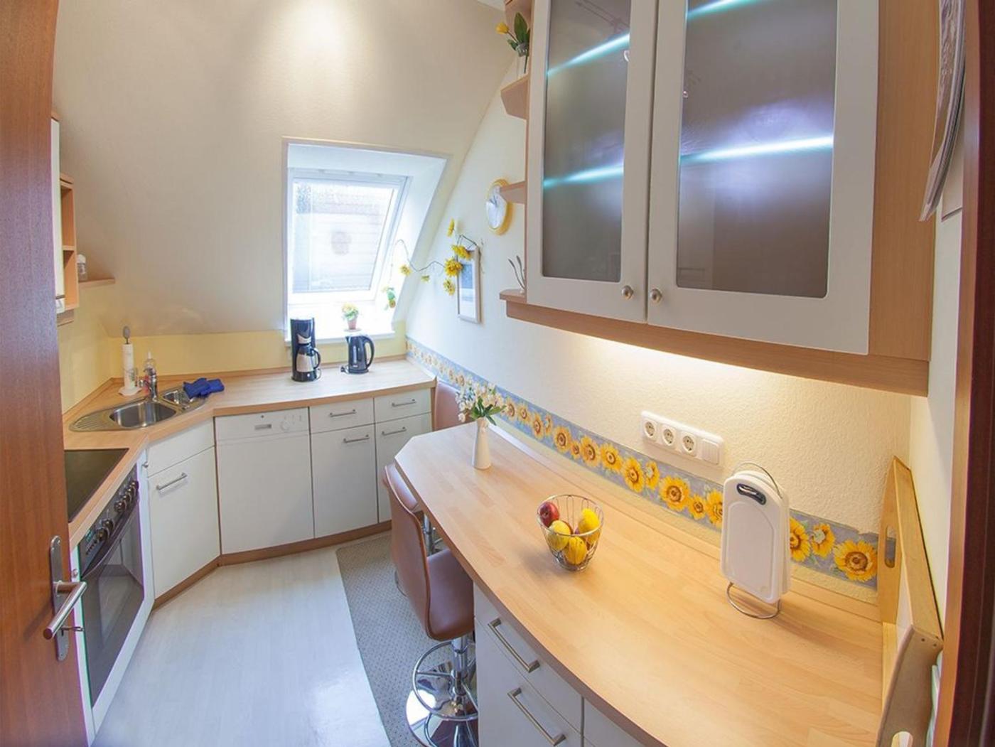 Apartment mit Balkon. This apartment is comprised of a kitchen, a seating area, 1 separate bedroom and 1 bathroom with a bath and a shower. Guests can make meals in the kitchen that comes with a stovetop, a refrigerator, a dishwasher and kitchenware. Featuring a balcony with garden views, this apartment also offers a coffee machine and a TV with satellite channels. The unit offers 1 bed.