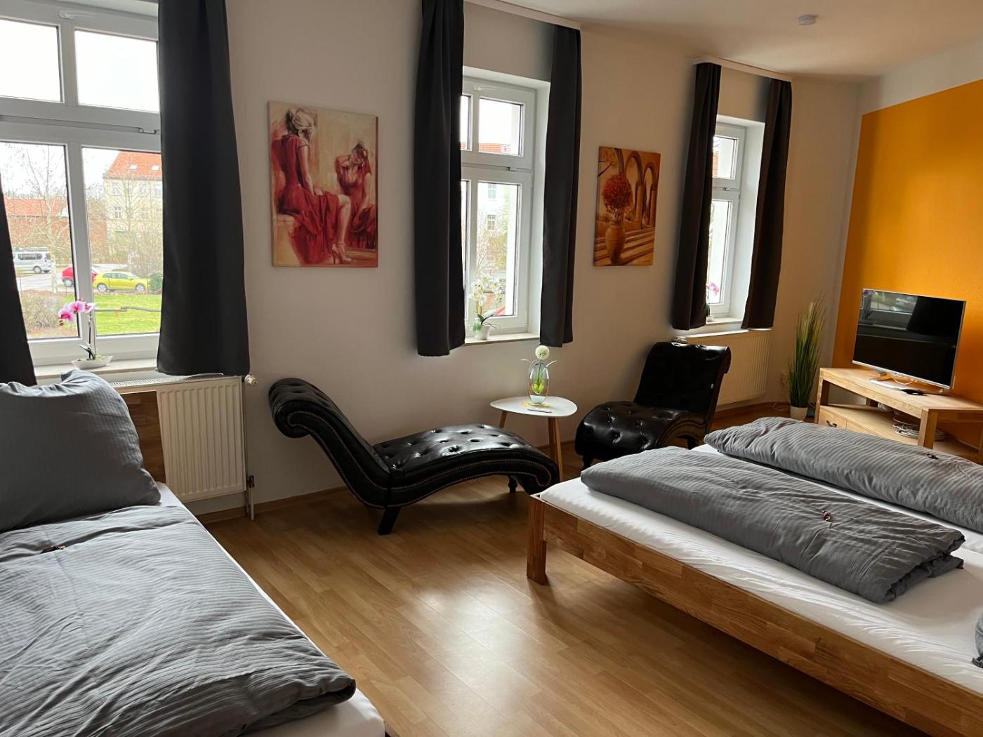 Gelegen in Dessau, 1,3 km von Hauptbahnhof Dessau und 2,9 km von Meisterhäuser in Dessau, bietet die Unterkunft FeWo "Franzi" 5 Personen, zentrale Lage, Parkplatz Übernachtungsmöglichkeiten mit Annehmlichkeiten wie kostenlosem WLAN und einem Flachbild-TV. Diese Ferienwohnung ist 35 km von Marktplatz in Wittenberg und 35 km von Sankt-Marien-Kirche entfernt.
