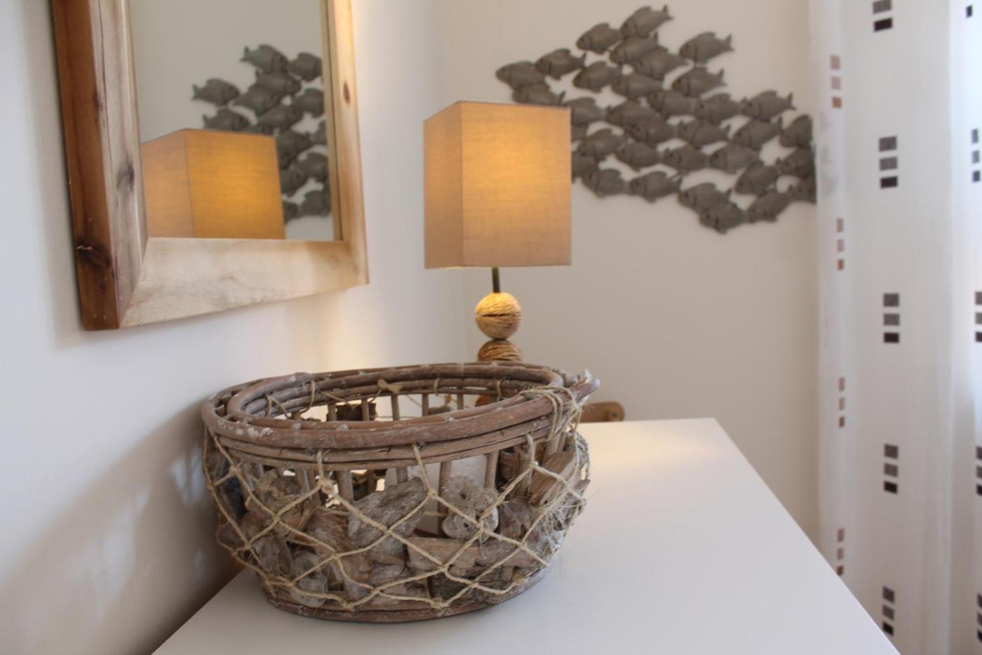 Apartment. This apartment includes 1 bedroom, kitchen, a terrace and 1 bathroom with a hairdryer. The well-fitted kitchen has a refrigerator, a dishwasher, an oven and a toaster. The apartment offers a flat-screen TV, a coffee machine, a high chair for children, heating as well as sea views. The unit has 2 beds.