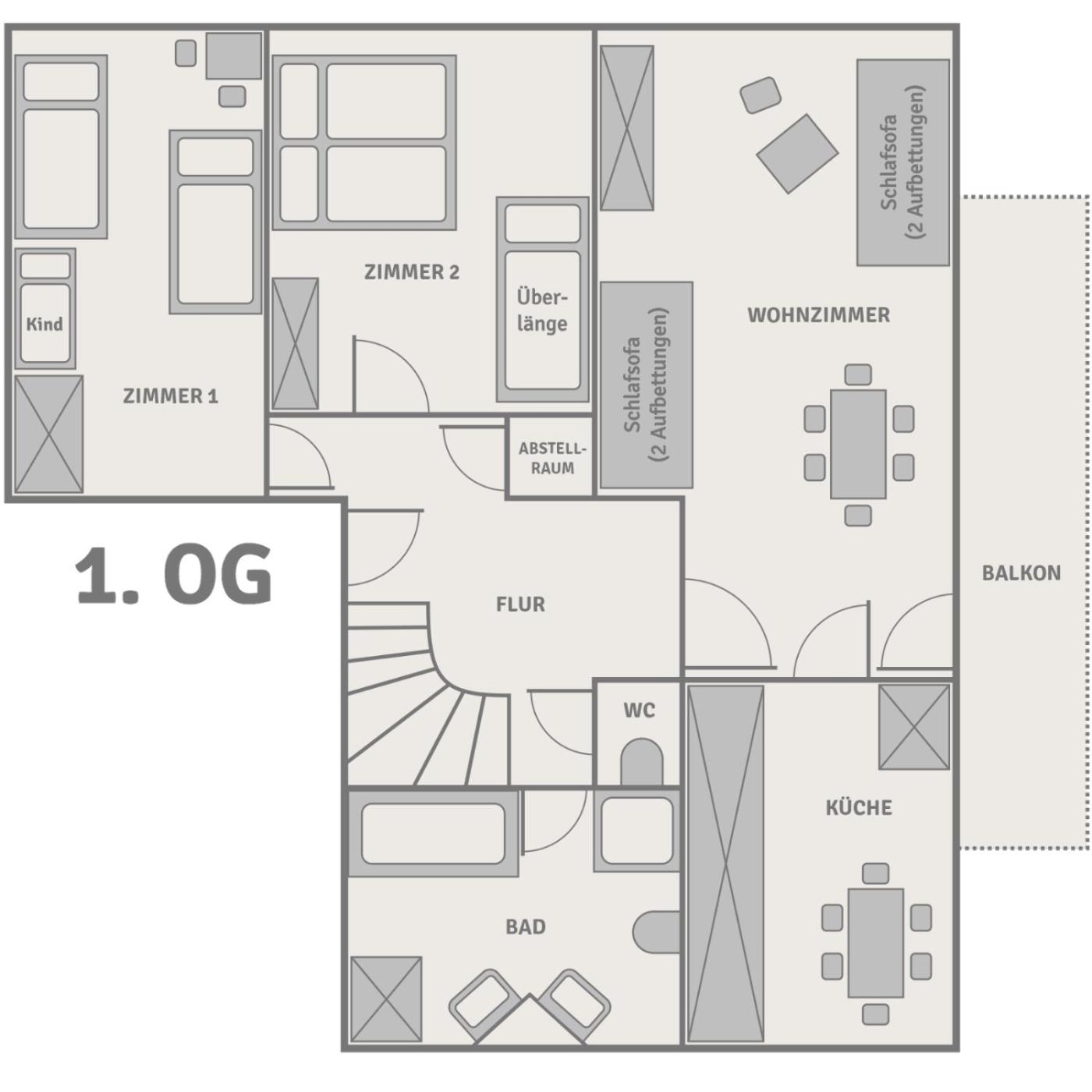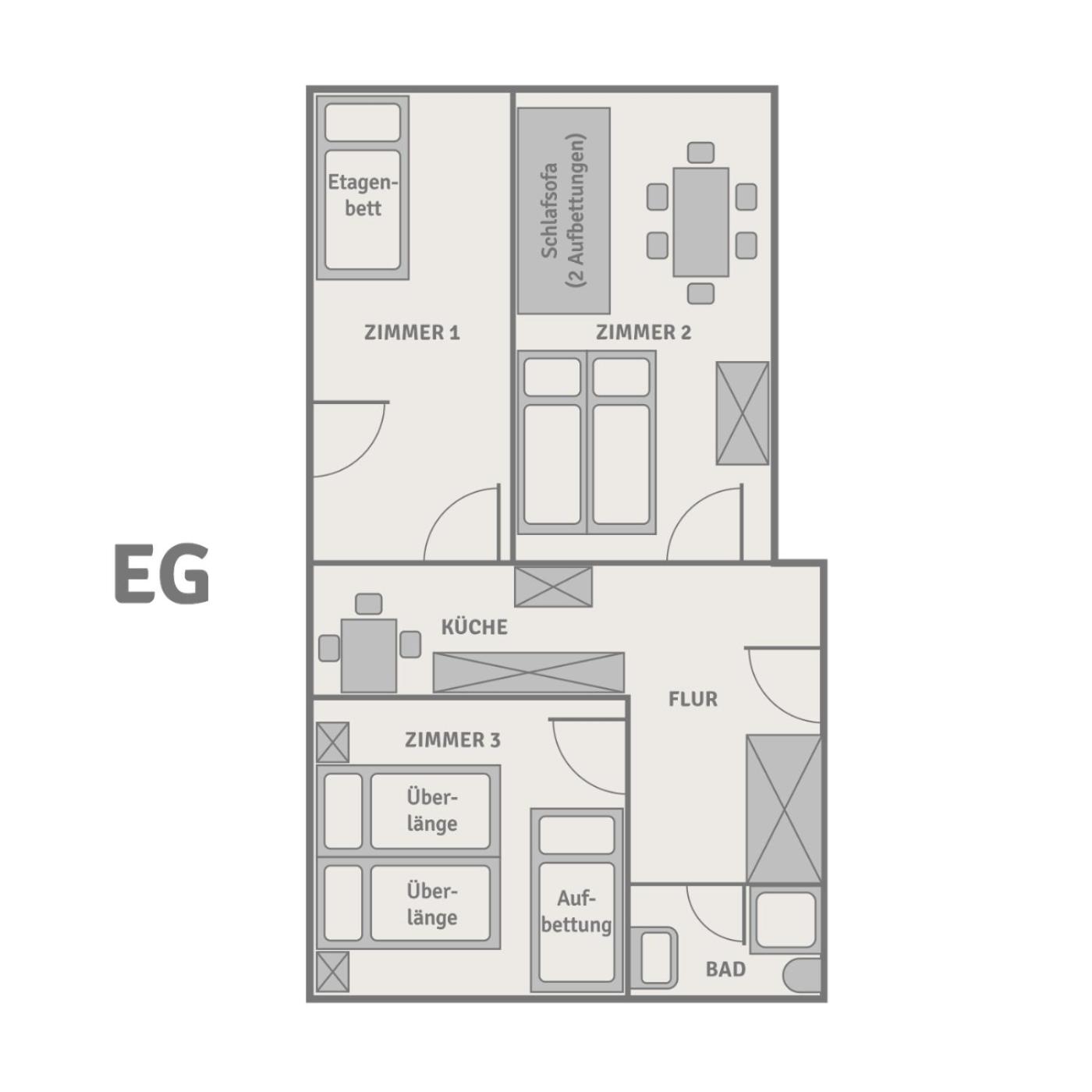 Apartment mit 2 Schlafzimmern. The apartment has 2 bedrooms, 1 bathroom and a kitchen. The apartments kitchen is available for cooking and storing food. The unit has 4 beds. ;