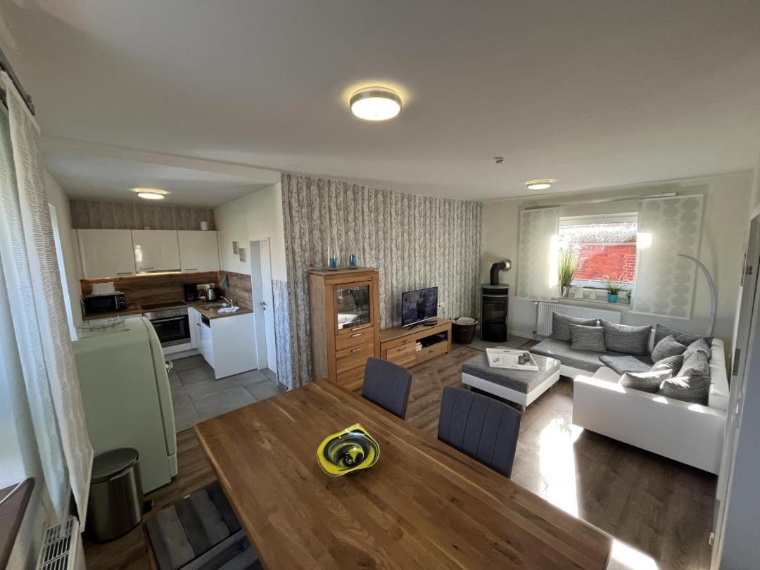 Ferienhaus. This holiday home features a fireplace. Featuring a private entrance, this holiday home comprises 1 living room, 2 separate bedrooms and 1 bathroom with a shower and a hairdryer. Meals can be prepared in the well-fitted kitchenette, which comes with a refrigerator, a dishwasher, an oven and a microwave. The holiday home provides a coffee machine, a dining area, a high chair for children, heating and a TV with cable channels. The unit offers 2 beds.