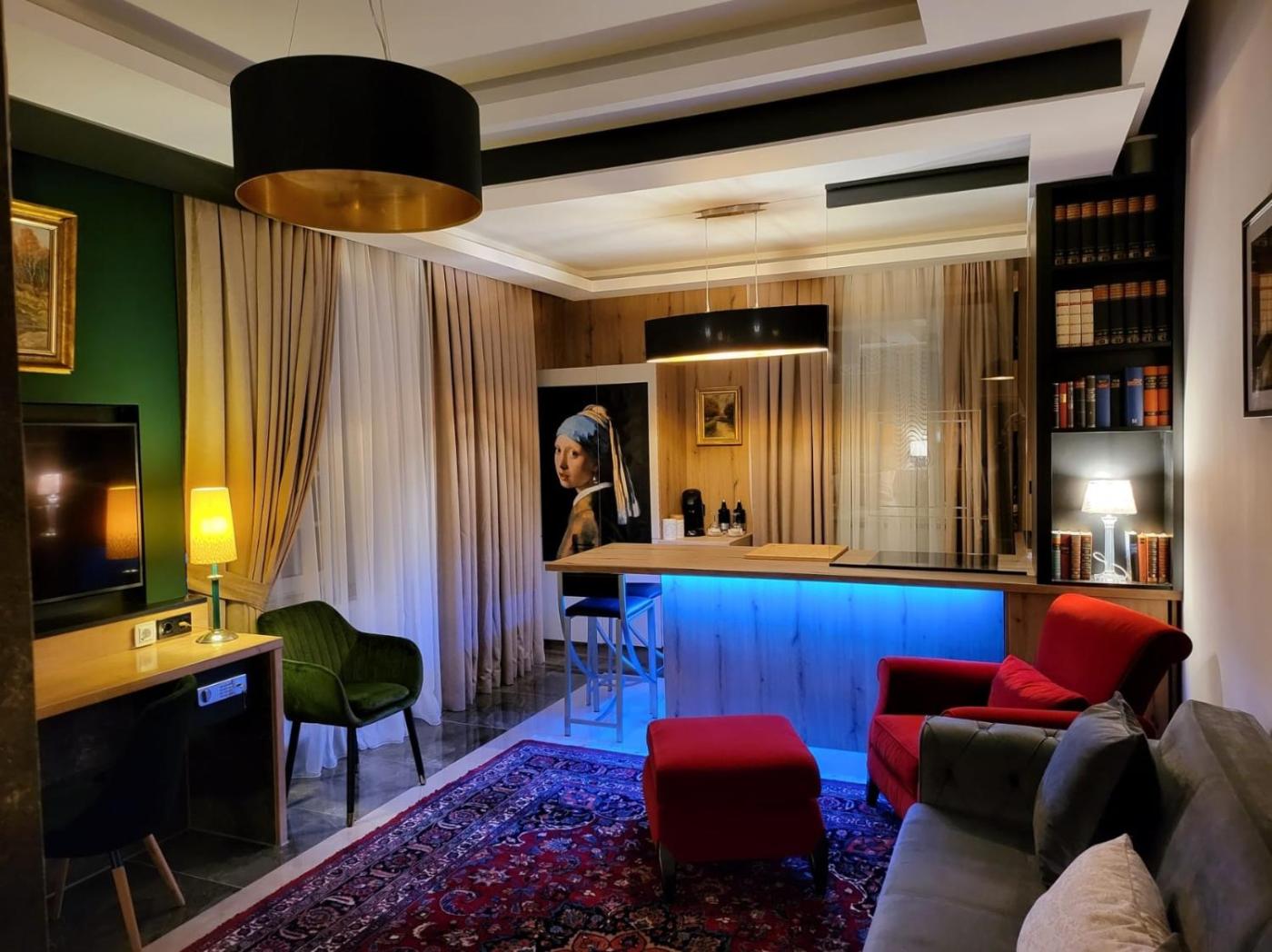 Deluxe Studio. The studio features a seating area, a wardrobe, as well as a private bathroom featuring a shower and a hairdryer. In the kitchen, guests will find a stovetop, a refrigerator, a dishwasher and kitchenware. The studio provides a washing machine, a private entrance, a tea and coffee maker, a flat-screen TV with satellite channels, as well as garden views. The unit offers 1 bed. ;