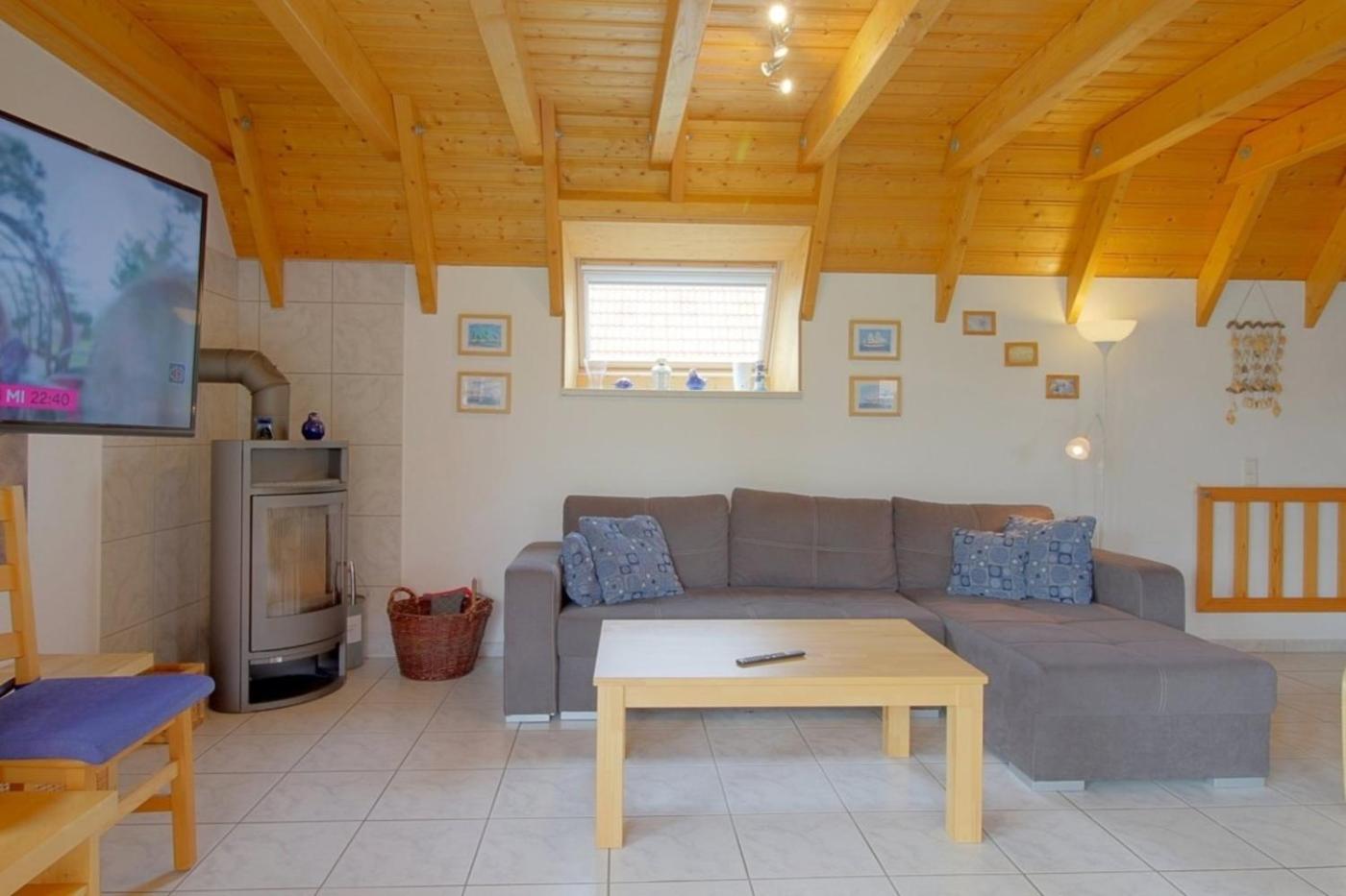 Ferienhaus. This holiday homes special feature is the fireplace. Featuring 2 bedrooms and 1 bathroom with a shower, this holiday home offers a well-fitted kitchenette and a terrace. Guests will find a stovetop, a refrigerator, a dishwasher and an oven in the fully equipped kitchenette. The holiday home also offers a barbecue. Boasting outdoor furniture, this holiday home also provides a washing machine, a coffee machine and a TV. The unit has 3 beds.