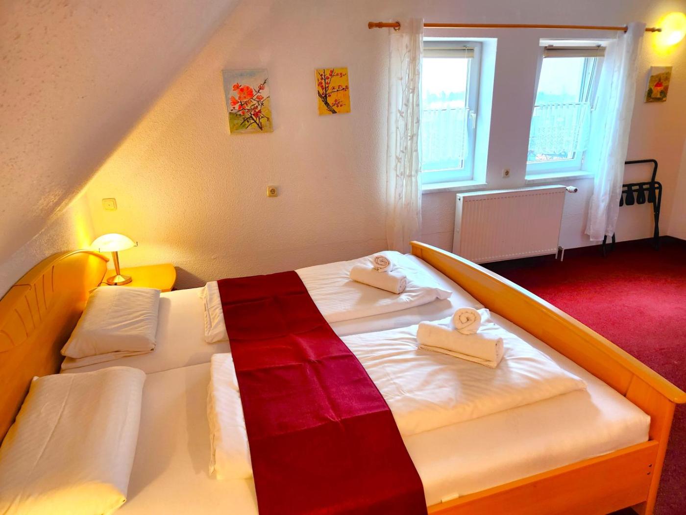 In der Unterkunft Pension Blümchen am Kiesgrube sind alle Zimmer ausgestattet mit einem Schreibtisch, einem Flachbild-TV, einem eigenen Badezimmer, Bettwäsche und Handtüchern. Die Zimmer bieten den Gästen einen Kühlschrank.