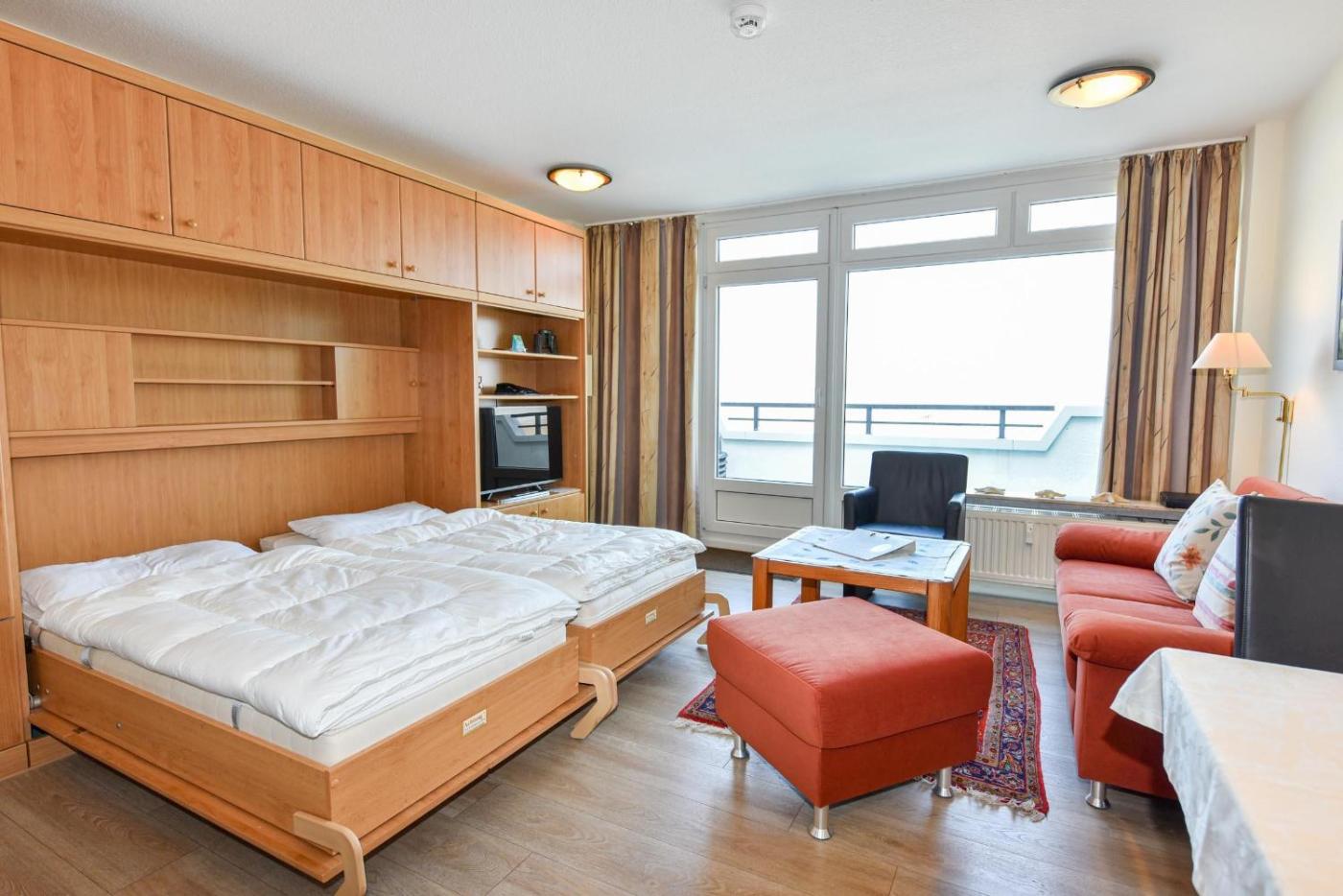 Apartment mit Meerblick. This apartments standout features are the pool with a view and sauna. This apartment is comprised of 1 living room, 1 separate bedroom and 1 bathroom with a shower. The well-equipped kitchen features a stovetop, a refrigerator, kitchenware and an oven. Featuring a balcony with sea views, this apartment also offers a washing machine and a TV. The unit offers 3 beds.