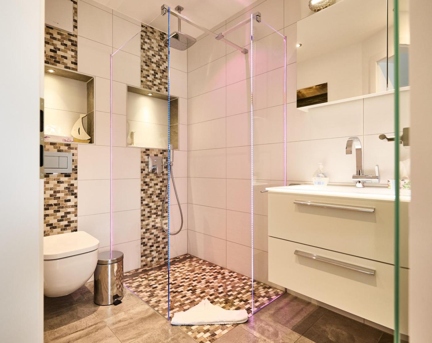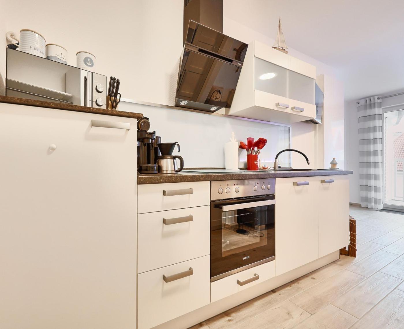 Apartment mit 1 Schlafzimmer und Balkon. The sauna is a top feature of this apartment. This apartment comes with 1 living room, 1 separate bedroom and 1 bathroom with a walk-in shower and a hairdryer. Guests can make meals in the kitchen that features a refrigerator, a dishwasher, an oven and a microwave. Boasting a balcony with sea views, this apartment also features a washing machine and a flat-screen TV. The unit has 2 beds.