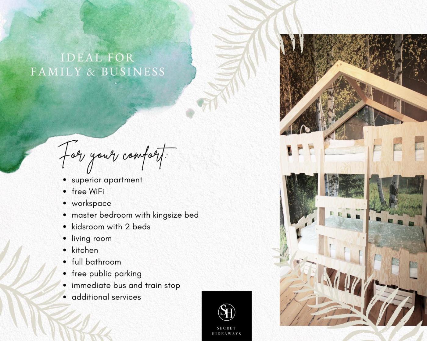 SECRET HIDEAWAYS Wood Lodge mit Kinderzimmer Messe l City l Flughafen l Hbf